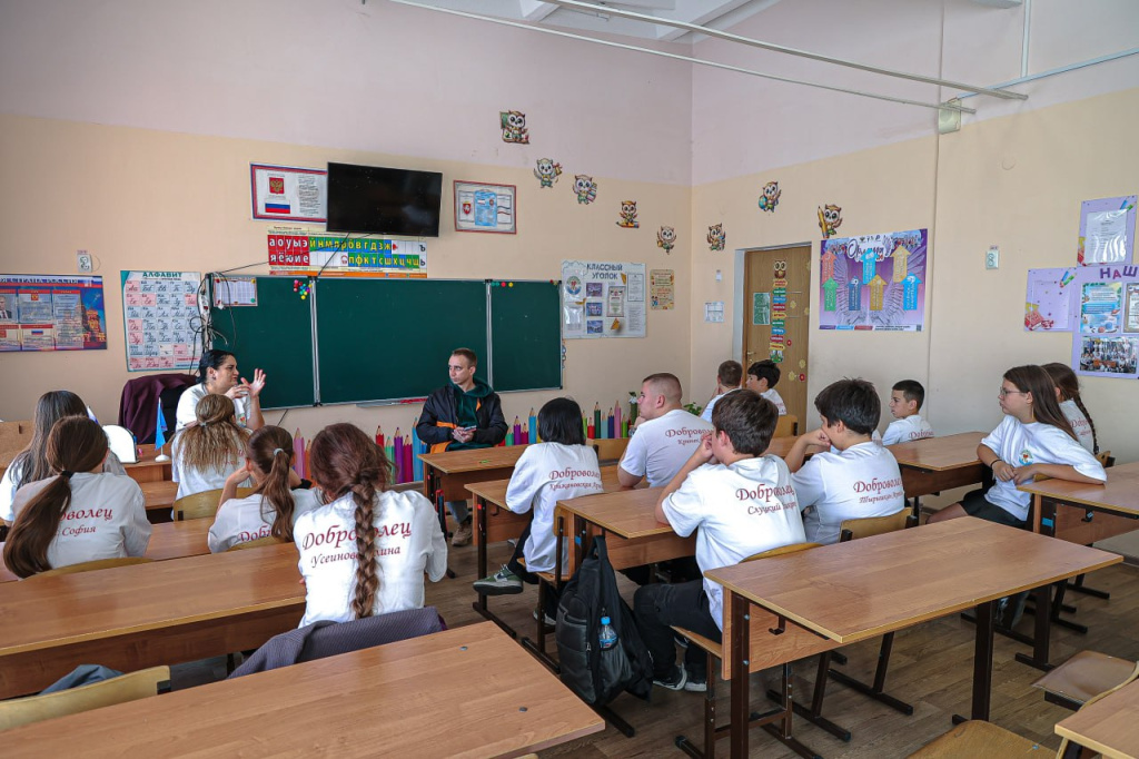 Школьники участвуют в акциях «Веточка сирени», в рамках которой 9 Мая встречаются с ветеранами Великой Отечественной войны, организуют небольшой концерт. Участвуют в субботниках, помогают местному храму и мечети, на Новый год дарят подарки детям из детдома, собирают канцтовары и школьные принадлежности для школьников из новых исторических территорий, участвуют в акции «Ёлка желаний».