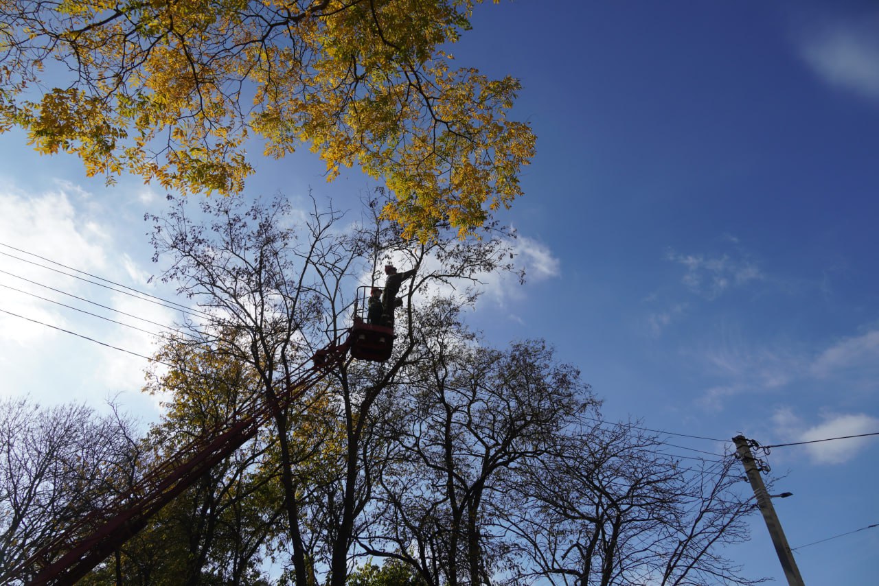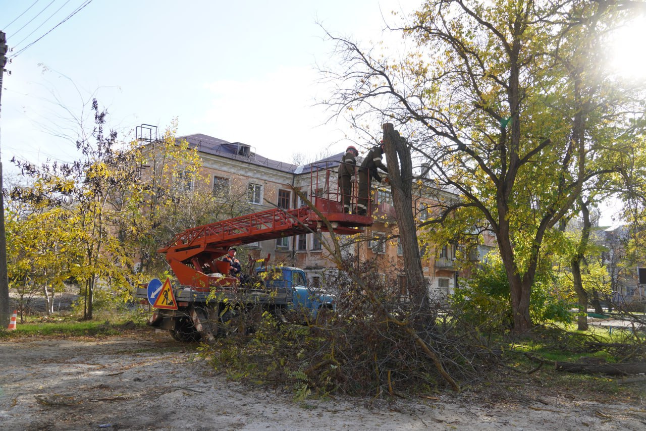 Служба городского хозяйства с применением вышки произвела большой объем по обрезке многолетних деревьев. Эти работы еще продолжаются.