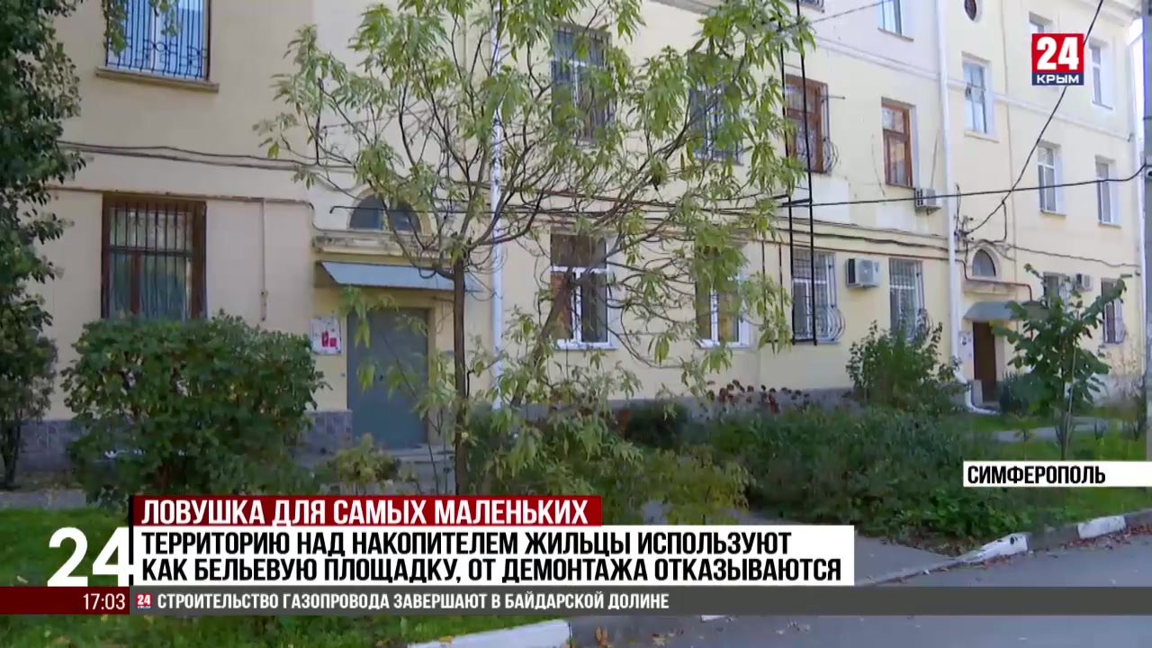 Небезопасное ландшафтное решение. В одном из Симферопольских дворов бесхозный пожарный накопитель советского периода угрожает жизни детей. Мнения жильцов разделились. Одни хотят избавиться от сооружения, другие считают, что достаточно капитального ограждения. Какое решение в результате приняли? Знает Александр Губарев.