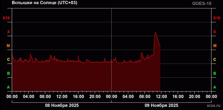 Вспышка направлена на Землю. Её уровень превысил Х (очень сильная).