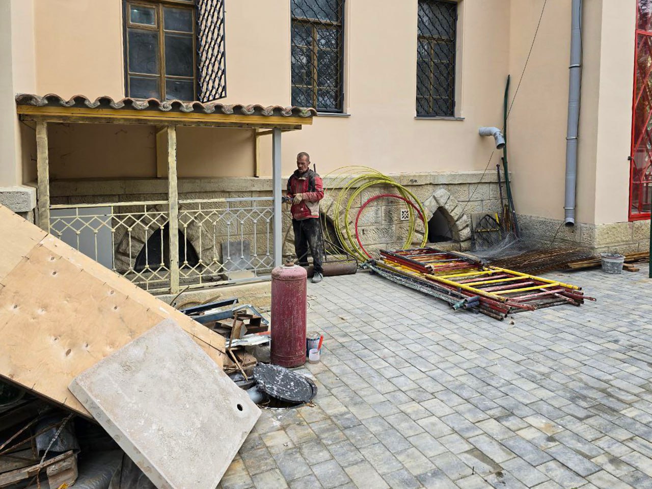 Сейчас ведутся завершающие отделочные работы, восстановление полов и дверей и воссоздание утраченной мраморной облицовки портала главного входа.