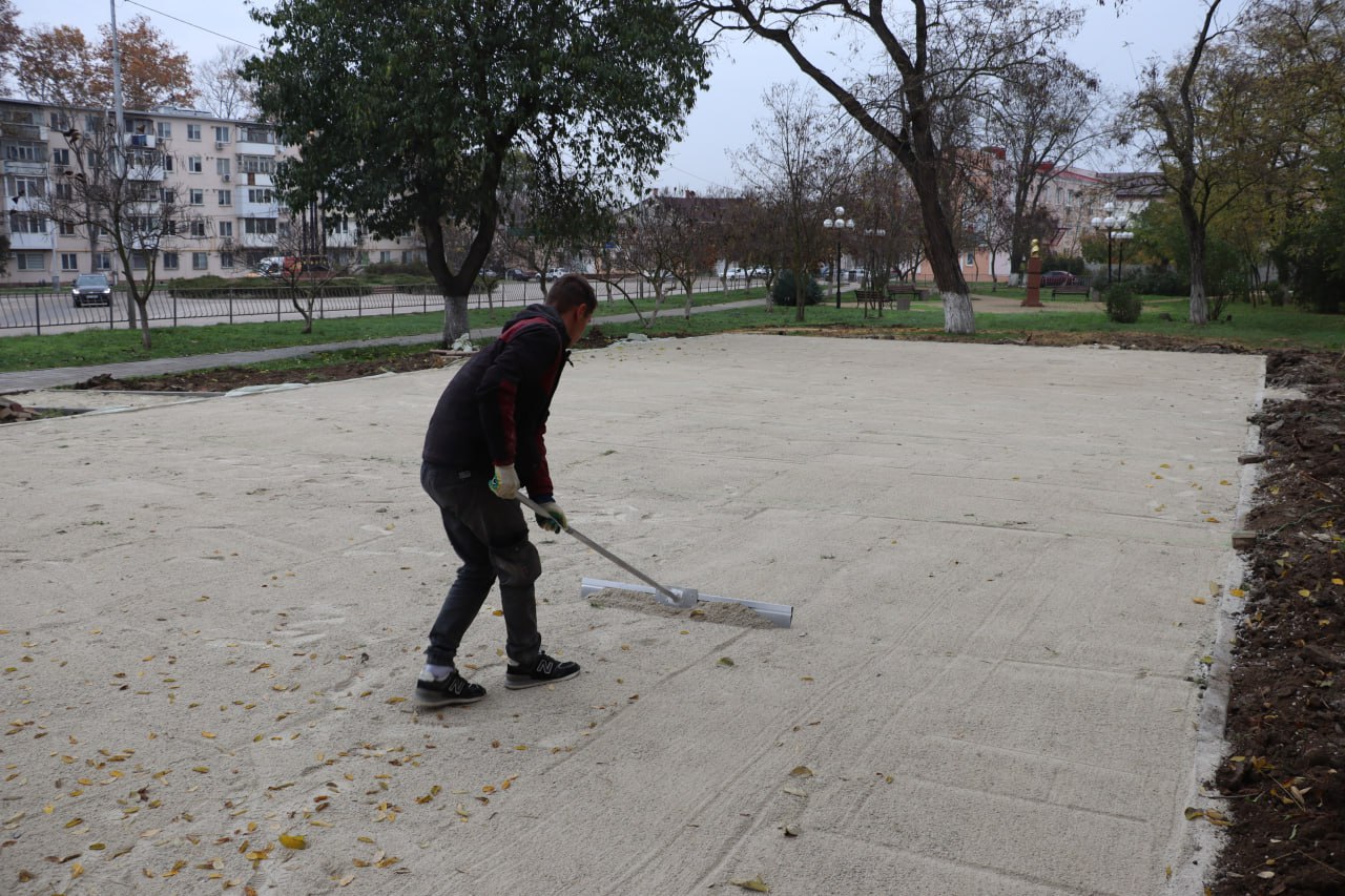 В сквере им. Н.И. Пирогова обустраивают основание под установку детской площадки.