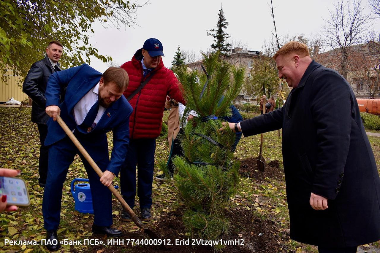 Местные жители, волонтёры, сотрудники и клиенты ПСБ высадили в сквере клёны, сливы и крымские сосны, установили памятную табличку.