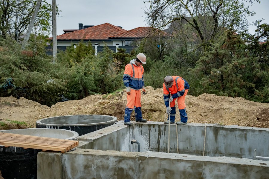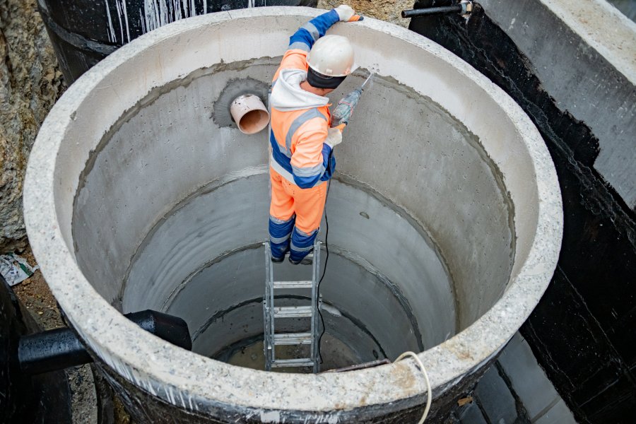 На сегодняшний день строители гидроизолируют камеру станции и колодцы, соединяют элементы системы и занимаются установкой насосного оборудования.