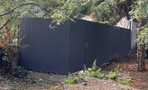 забор, изготовленный из профлиста зеленого цвета, с калиткой из металла красного цвета, в количестве 1 (одной) единицы, размер – 7,44 п.м.