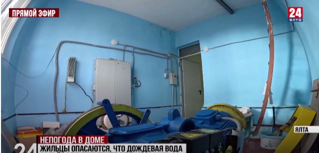 Жильцы ялтинской многоэтажки опасаются дождливой погоды. Есть вероятность, что осадки попадут в машинное отделение лифта – на электрическое оборудование. Из-за этого новый подъёмник не запускают. Чтобы решить проблему, люди обратились к подрядчику и сотрудникам управляющей компании. Когда вновь запустят механизм, узнавал корреспондент телеканала «Крым 24» Никита Аброчнов.