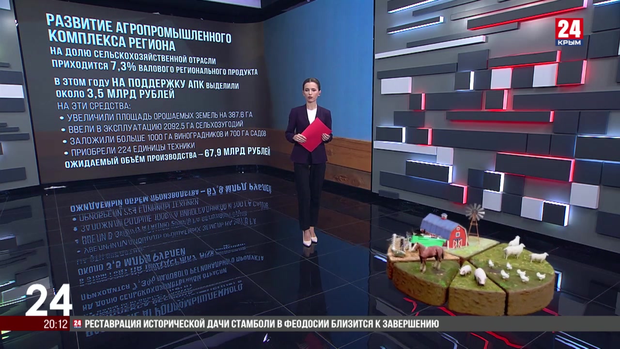 Почти три с половиной миллиарда рублей выделили на поддержку сельского хозяйства в этом году. Эти средства направили на развитие растениеводства и животноводства, рыбной отрасли и пищевой промышленности. Это — одна из приоритетных отраслей Крыма. На её долю приходится больше 7% валового регионального продукта. Итоги работы агропромышленного комплекса региона подвели на заседании Президиума Государственного Совета Республики.