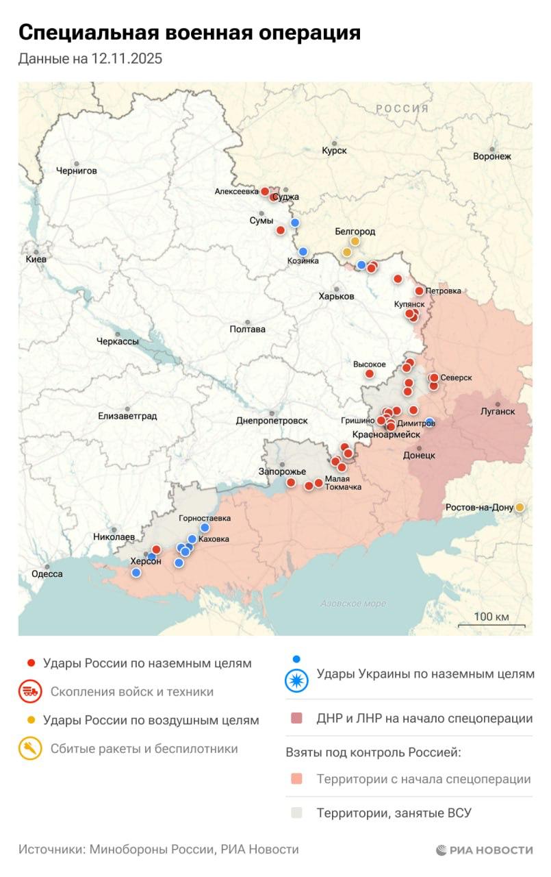 МОСКВА, 12 ноя - РИА Новости. Воздушная тревога объявлена в восьми областях Украины, свидетельствуют данные онлайн-карты украинского министерства цифровой трансформации. Согласно данным онлайн-карты, сигнал воздушной тревоги звучит в Одесской...