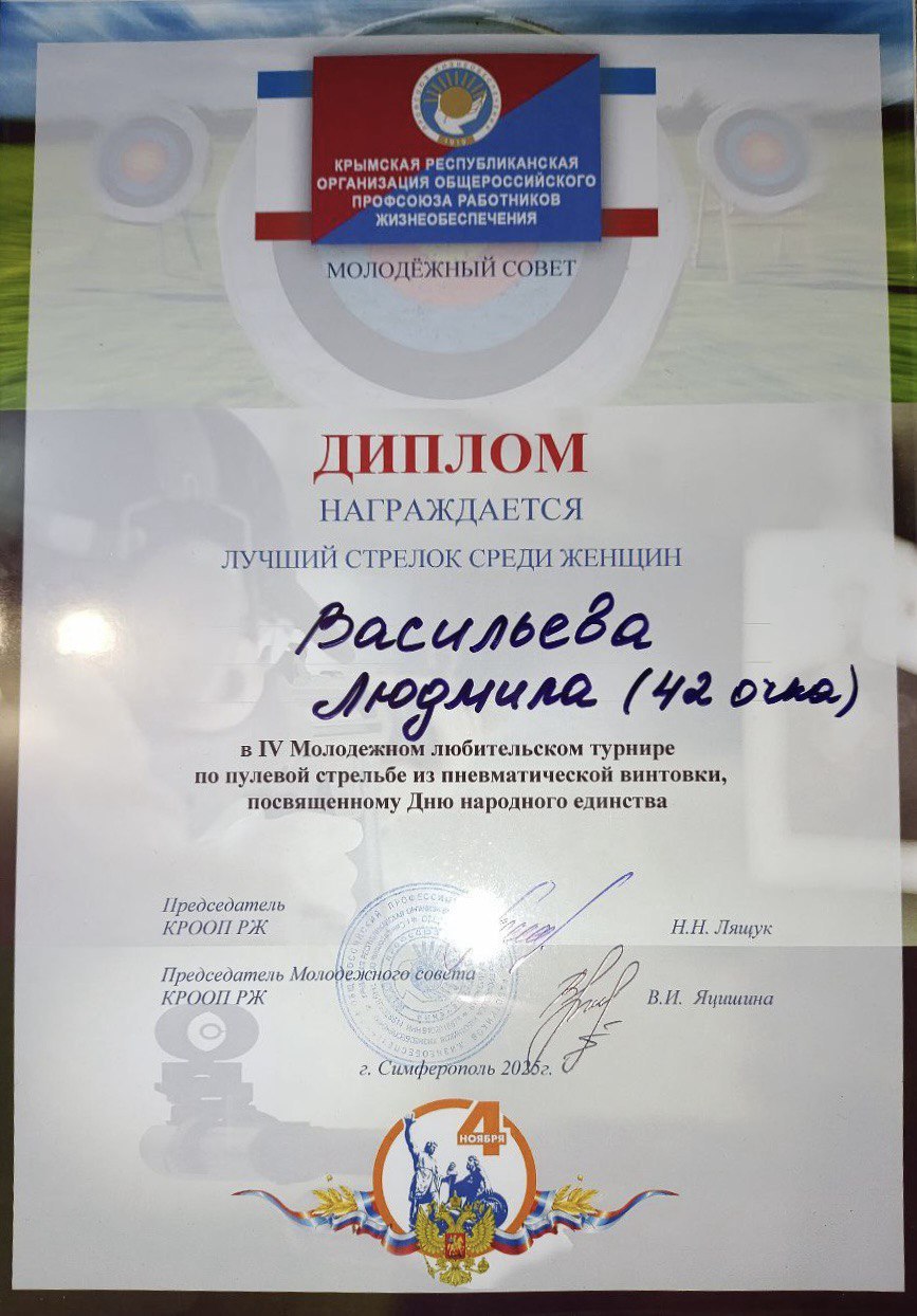 8 ноября команда Красноперекопского филиала ГУП РК «Вода Крыма» приняла участие в IV Молодежном любительском турнире по пулевой стрельбе из пневматической винтовки среди членов профсоюза КРООП работников жизнеобеспечения в г. Симферополе.