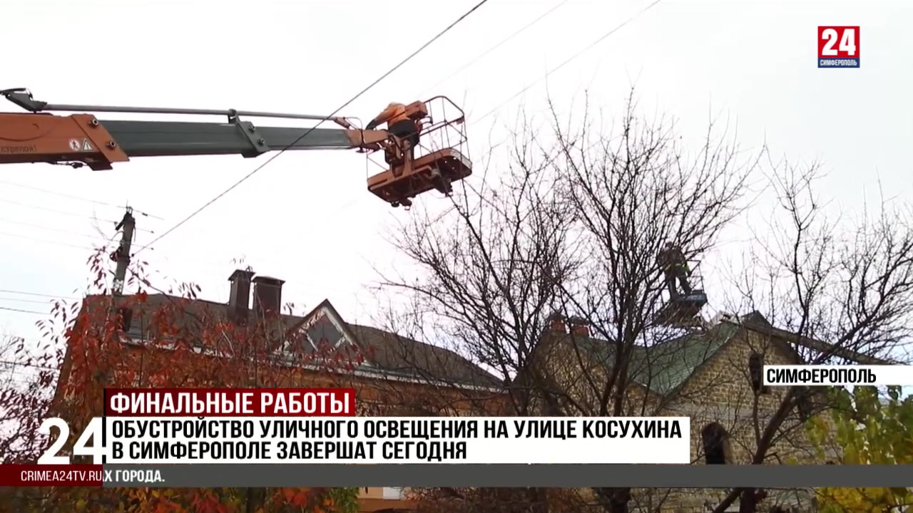 Монтаж линий электропередачи завершили на улице Косухина в Симферополе. Работы ведут две бригады.