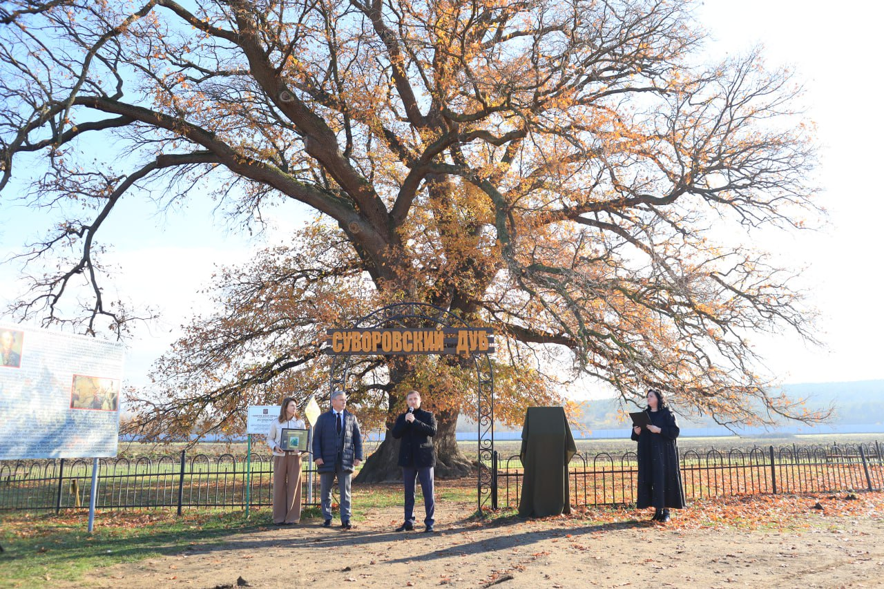 Церемония, состоявшаяся сегодня у Суворовского дуба, стала важным событием для всего района. Дерево, возраст которого насчитывает несколько столетий, получило высокую оценку среди 70 природных объектов из разных регионов России, включённых в Национальный реестр «Памятники живой природы». Конкурс объединяет деревья с уникальной историей, экологической и культурной ценностью, и вхождение в тройку лидеров — значимое достижение для нашего района.