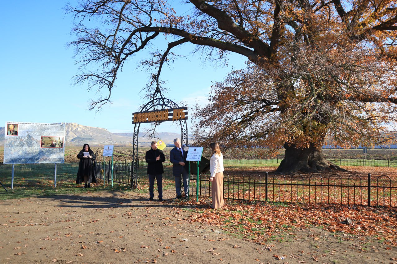 Диплом бронзового финалиста всероссийского конкурса вручил председатель сертификационной комиссии программы «Деревья — памятники живой природы» и сопредседатель программного комитета конкурса Сергей Борисович Пальчиков. Вместе с министром экологии Республики Крым Ольгой Александровной Шевцовой он также принял участие в открытии памятной таблички у дуба, что подчеркнуло официальный федеральный статус природного объекта.