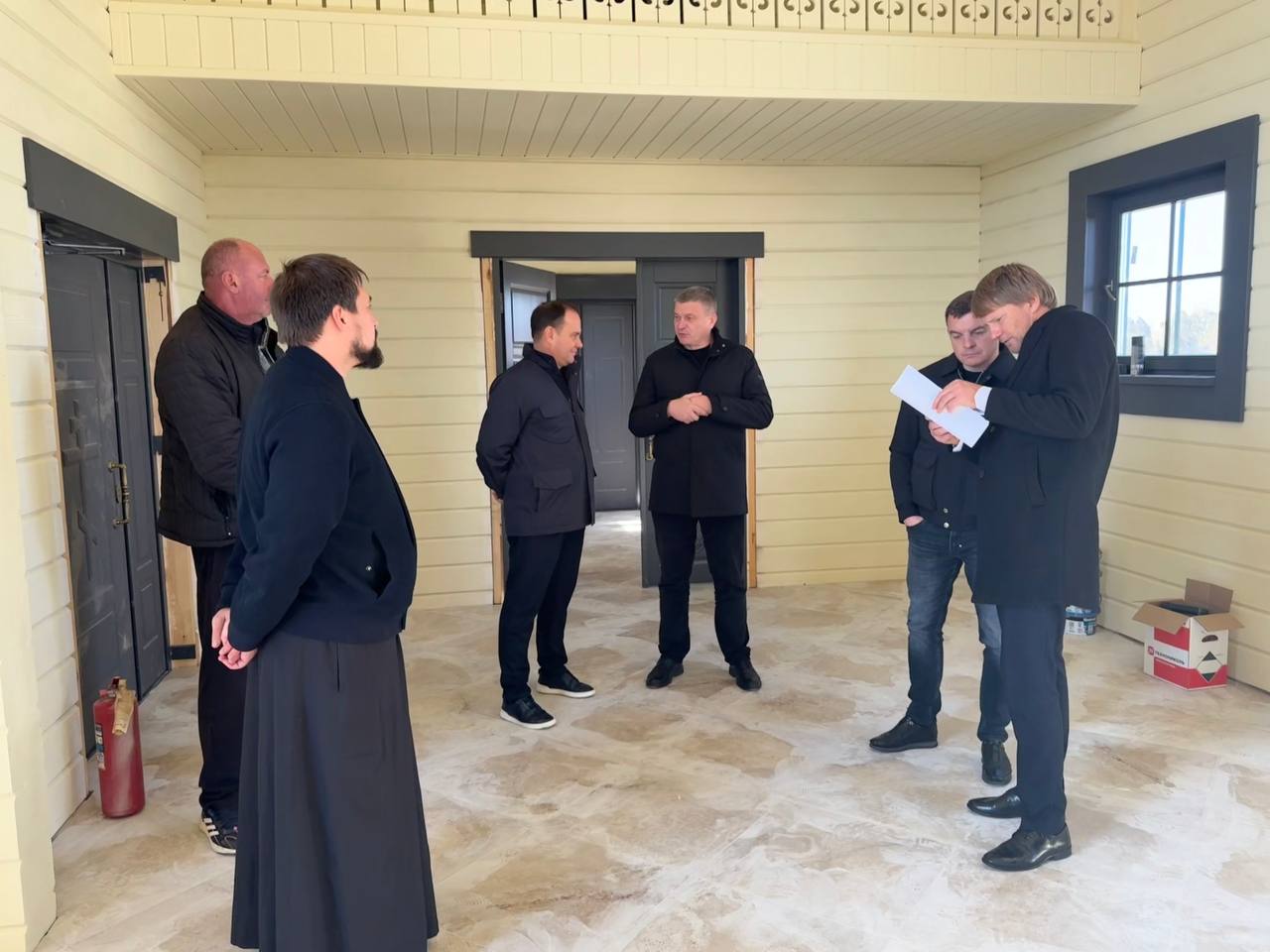 Обсудили рабочие моменты, которые необходимо решить до ввода церкви в эксплуатацию. В их числе система полива и высадки растений, другие детали.