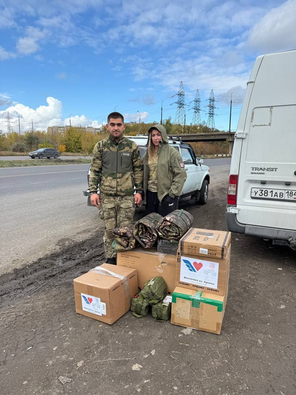 В этот раз передали тепловизионные покрывала, оборудование, аптечки и "вкусняшки" - сублимированные супы, борщи и каши от Весточки из Крыма.