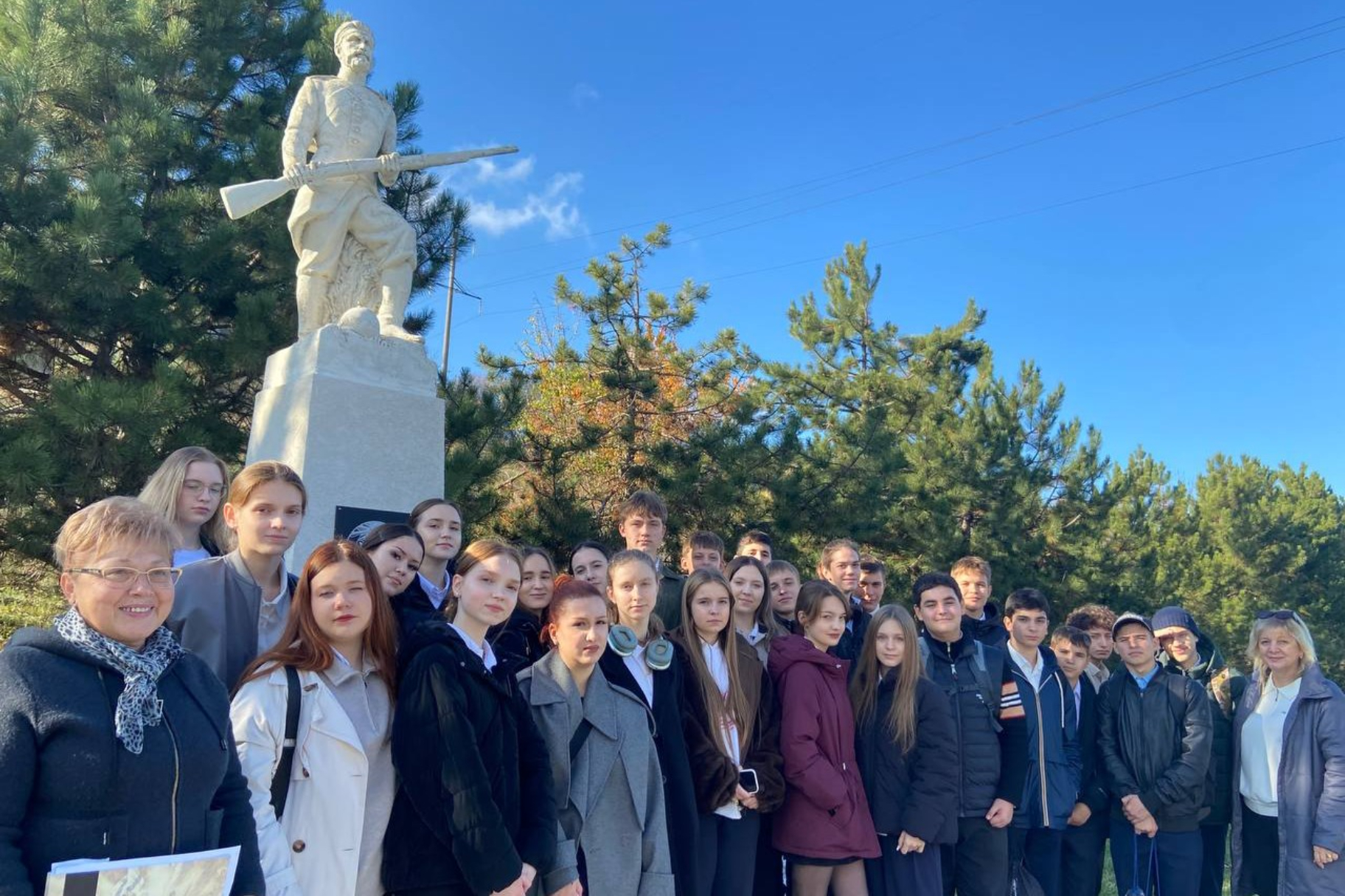 Встреча с обучающимися десятиклассниками Симферопольской МБОУ «Школа – лицей» №3 им. А.С. Макаренко состоялась на территории братского кладбища, где ребята ознакомились не только с ходом военных действий и другими историческими событиями, но и с первым памятником, установленным русскому рядовому солдату!