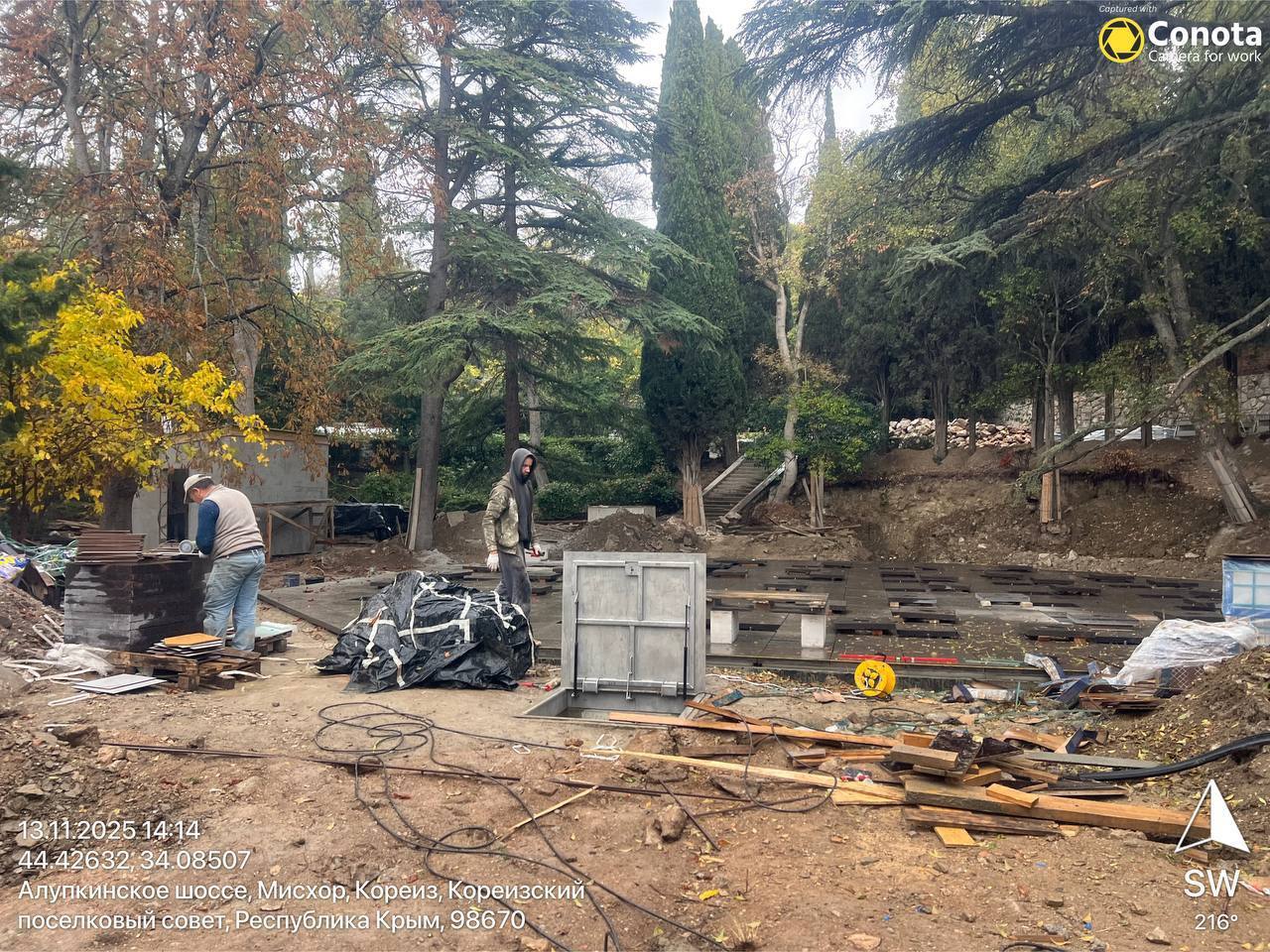 В Мисхорском парке завершен первый этап кладки тротуарной плитки, ведется оборудование серверной, где будет находится техническая аппаратура, в том числе, для осуществления видеонаблюдения.