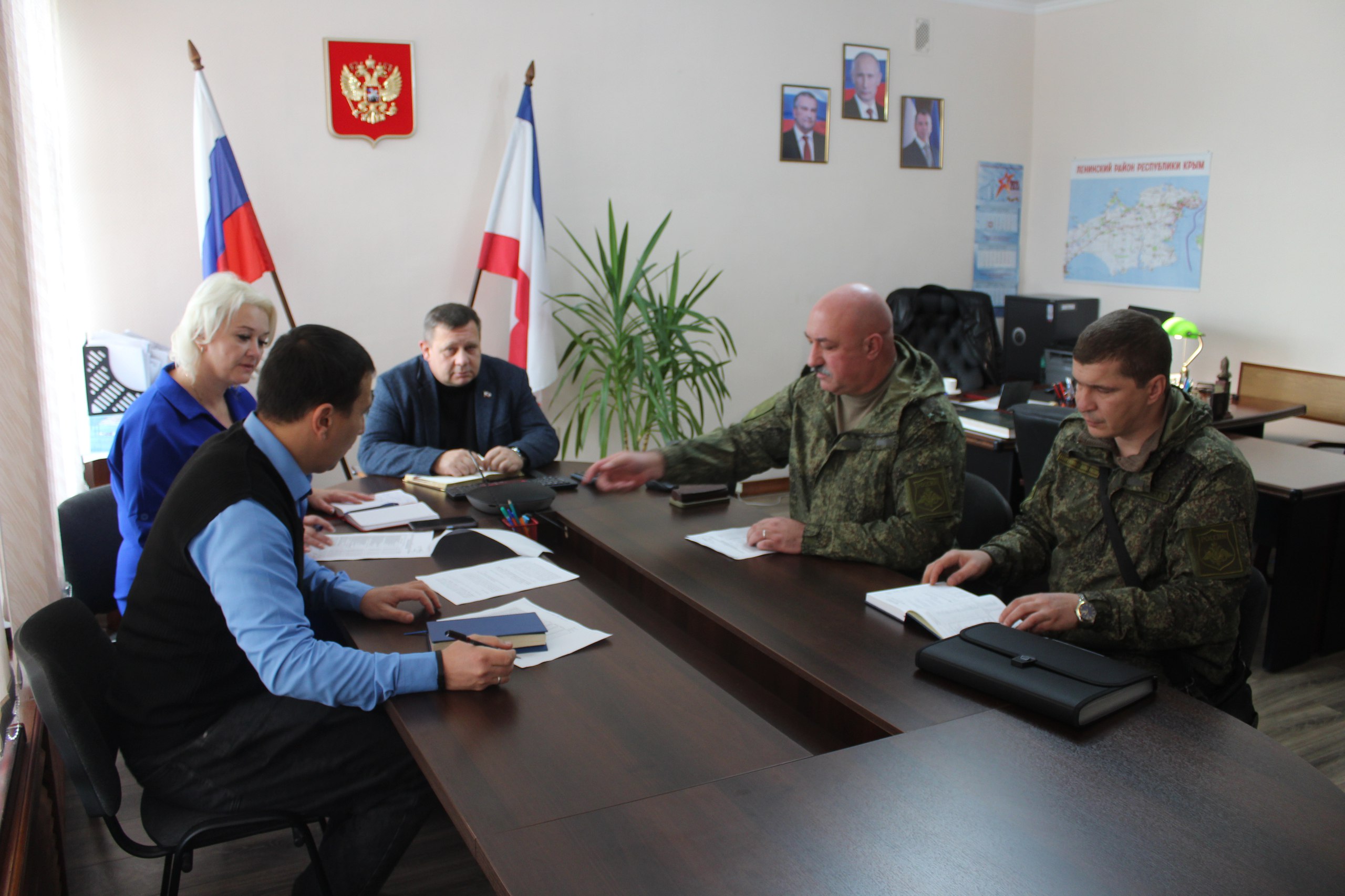 Сегодня в администрации Ленинского района прошёл конструктивный диалог между первым заместителем главы района Александром Саенко, и представителями военного комиссариата региона. В атмосфере сотрудничества собрались военный комиссар города Керчи и Ленинского района Валерий Мурадов, заместитель главы администрации района Елена Рудюк, заместитель начальника управления образования Дилявер Аметов и старший специалист-эксперт военного комиссариата Александр Мовтяненко.