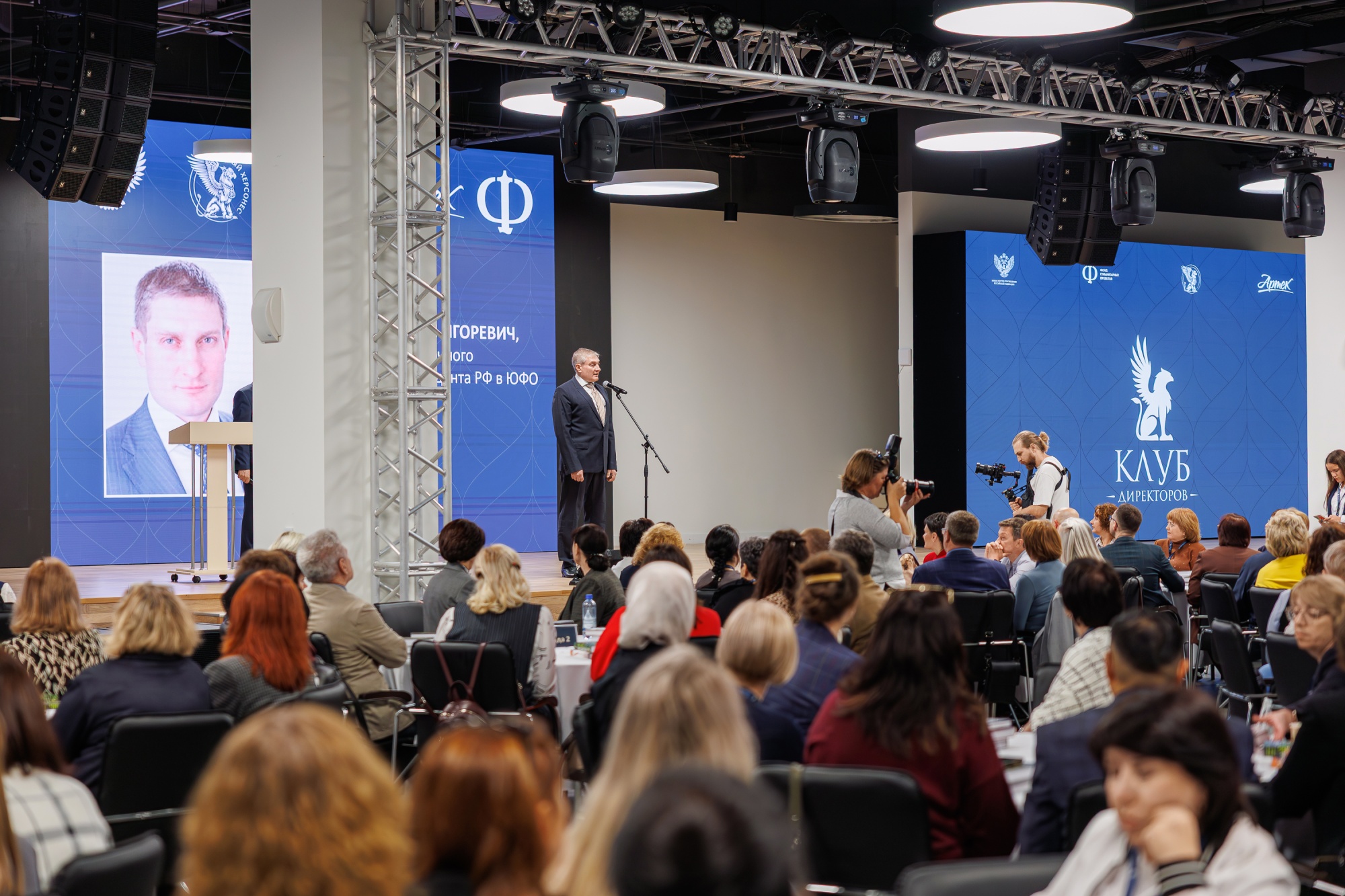 Участников «Клуба директоров» приветствовал заместитель полномочного представителя Президента РФ в ЮФО Кирилл Степанов. Он рассказал о роли воспитания и образования как фундамента для формирования социальной политики и мировоззрения у будущих поколений граждан России.