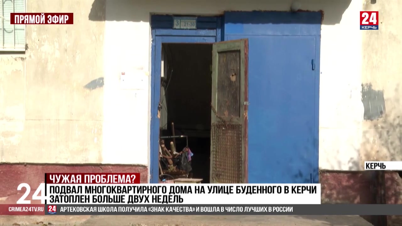 Подвал в керченской многоэтажке на улице Будённого затопило водой во второй раз за месяц. Обращения в управляющую компанию, водоканал и даже к депутату не помогли решить проблему. А на шоссе Героев Сталинграда жители многоквартирного дома уже не первый год ощущают запах стоков. Действительно ли коммунальные службы бездействуют? Разбиралась корреспондент телеканала «Крым 24» Ольга Браилова.
