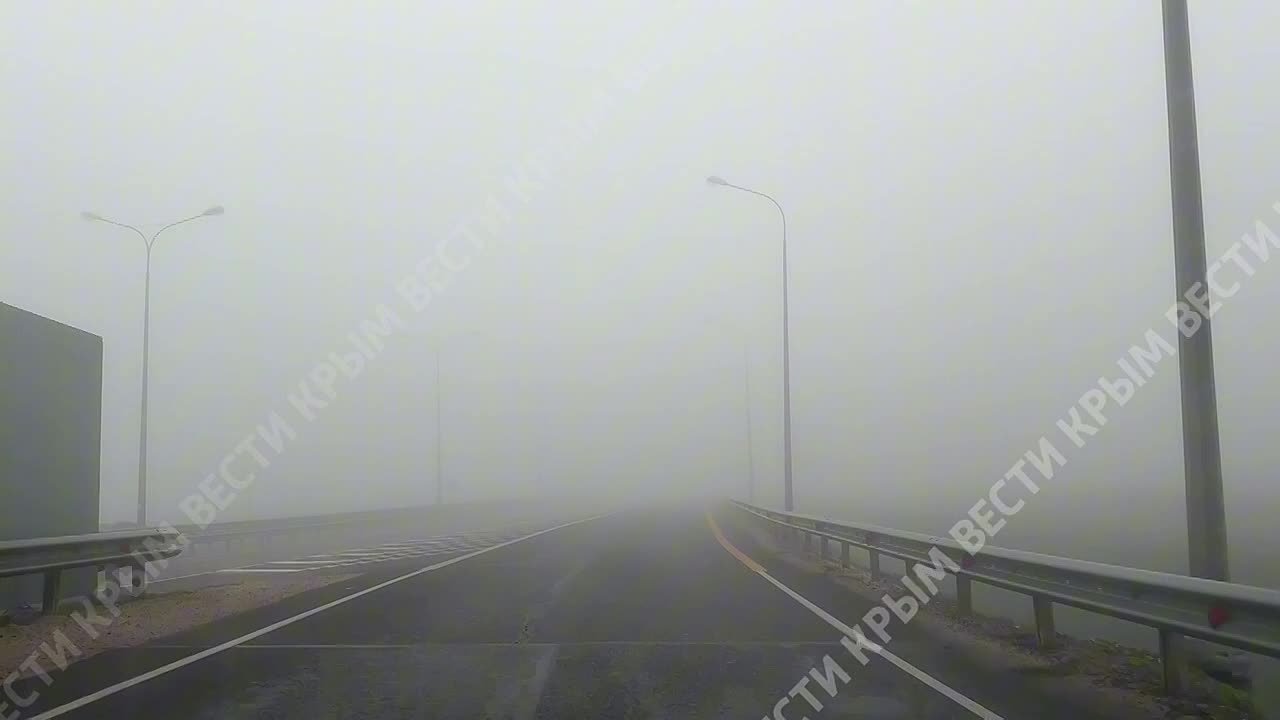 Въезд на трассу «Таврида» и автоподходы к Крымскому мосту со стороны Керчи окутал сильный туман