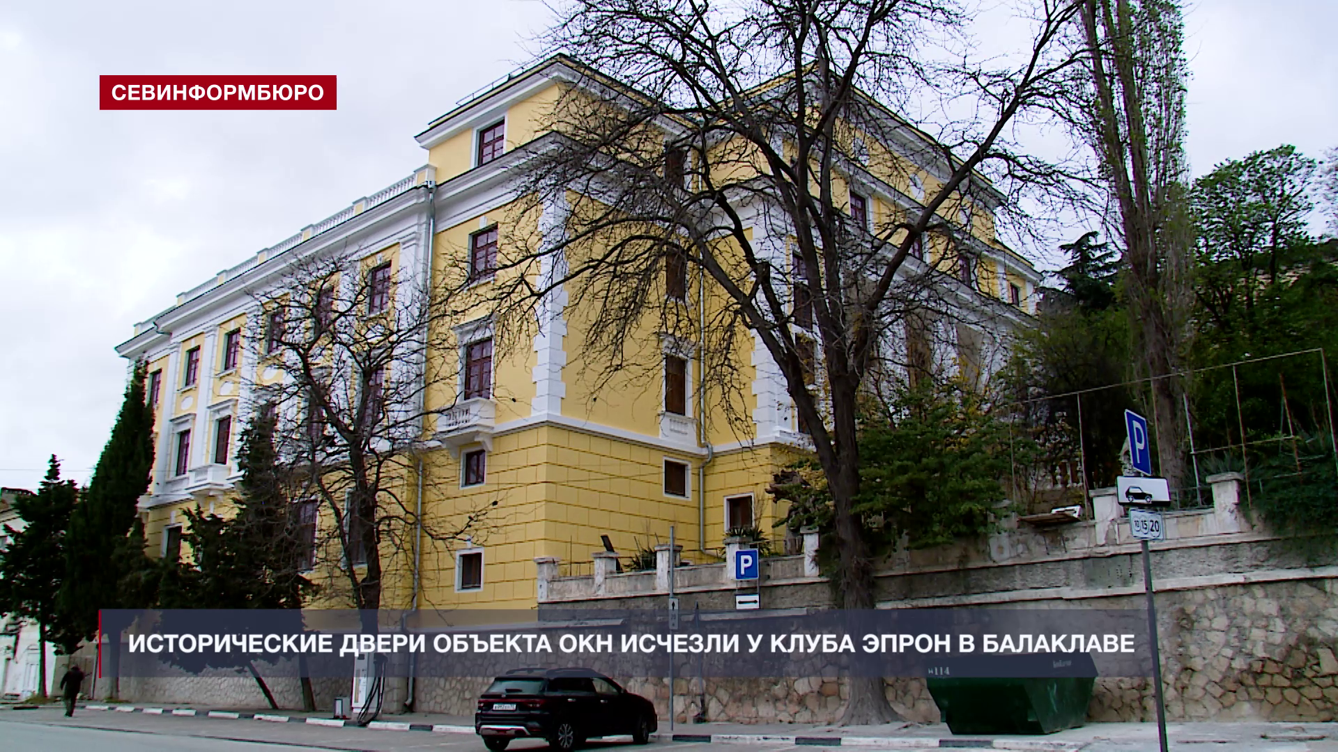 СТЕПАН САМОШИН, основатель сообщества «Архитектура Севастополя»: «По словам тех, кто в нём работал, служил, цокольный этаж здания – самое безопасное место во всём Севастополе. Здание довольно благополучно пережило Вторую оборону, видимо, потому что оно располагалось под горочкой и было защищено от немецкой артиллерии, ну, а прямых попаданий бомб у него не было. Ну и в целом, немцы относительно мало бомбили Балаклаву. И поэтому, когда мы видим его фотографии послевоенные, то видим, что оно в целом сохранилось неплохо, все окна даже на месте и, разумеется, эти красивые уникальные двери».