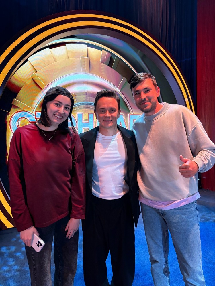 Рефат с ведущим шоу Ильей Соболевым и супругой Адиле. Фото: личный архив