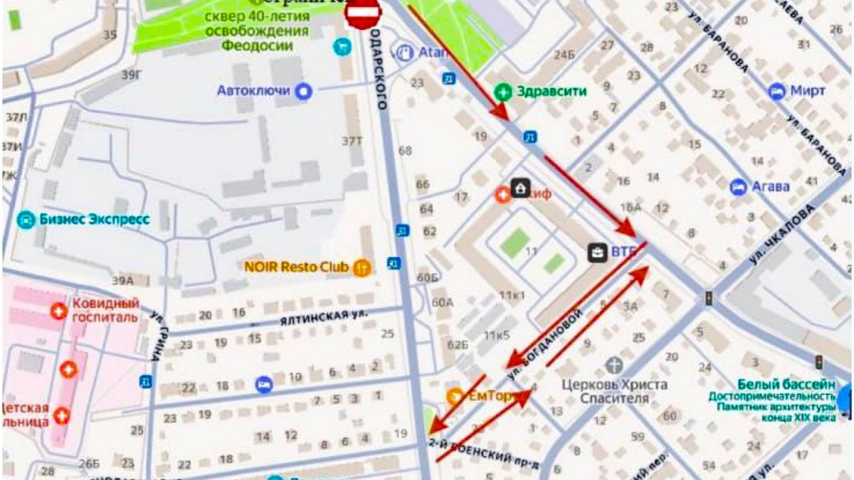 Чтобы объехать перекрытый участок, можно воспользоваться улицами Богдановой и Симферопольским шоссе.