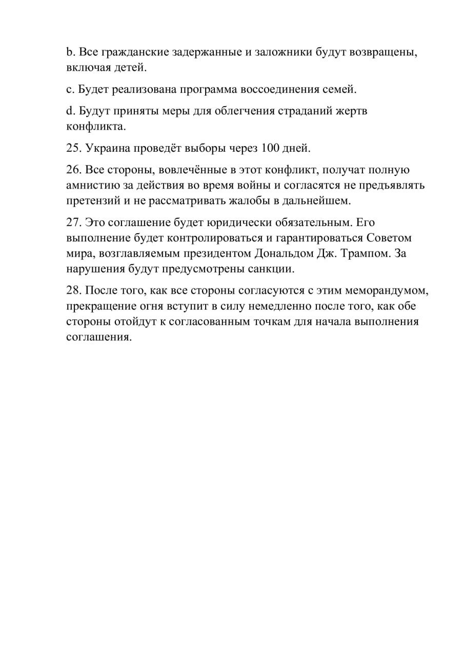 Рассмотрим подробнее:Украина закрепляет внеблоковый статус и отказ от НАТО, получает ограниченные гарантии безопасности от США, сокращает ВСУ;