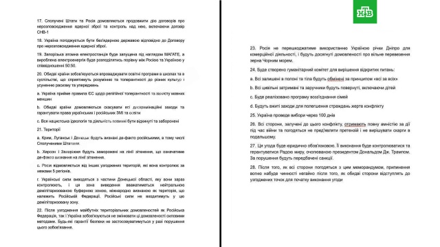 Украинские издание опубликовали все 28 пунктов американского плана по урегулированию конфликта.