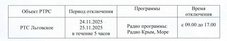 Планируется технологические перерывы в трансляции радиопрограмм.