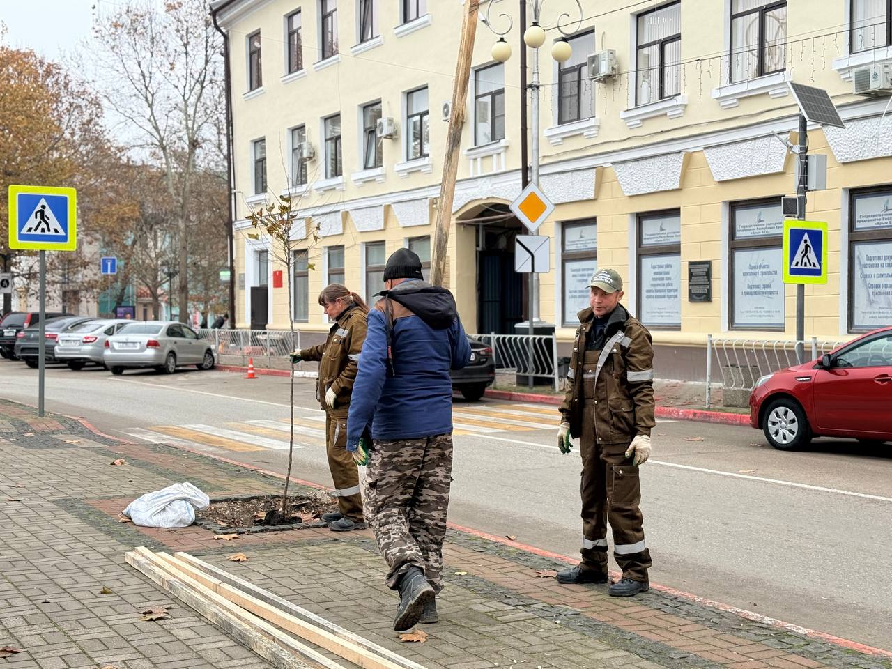 На улице Пирогова сотрудники Зеленхоза высаживают саженцы платанов. 25 деревьев украсят бульвар, разделяющий дорогу. Специалисты восстанавливают зеленое убранство вдоль одной из центральных дорог взамен сухих растений. Ранее они были удалены, а пни выкорчеваны.