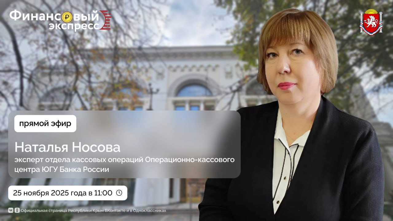 Во время трансляции главный эксперт по исследованию денежных знаков отдела кассовых операций Операционно-кассового центра Южного главного управления Банка России Наталья Носова расскажет о том, как распознать поддельные банкноты и что с ними делать.