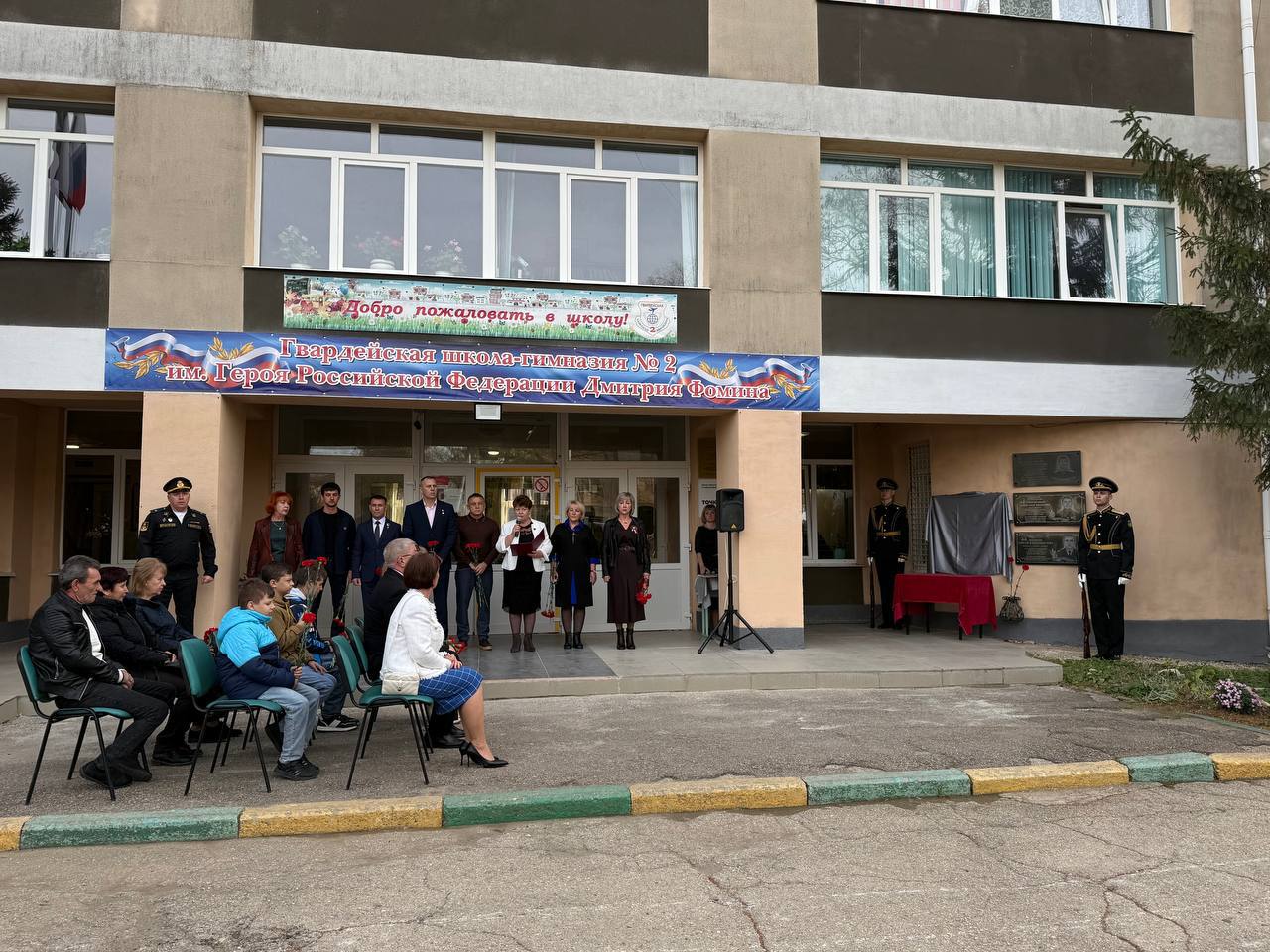 Принял участие в торжественной церемонии присвоения Муниципальному бюджетному общеобразовательному учреждению «Гвардейская школа-гимназия № 2» имени Героя Российской Федерации Дмитрия Олеговича Фомина.
