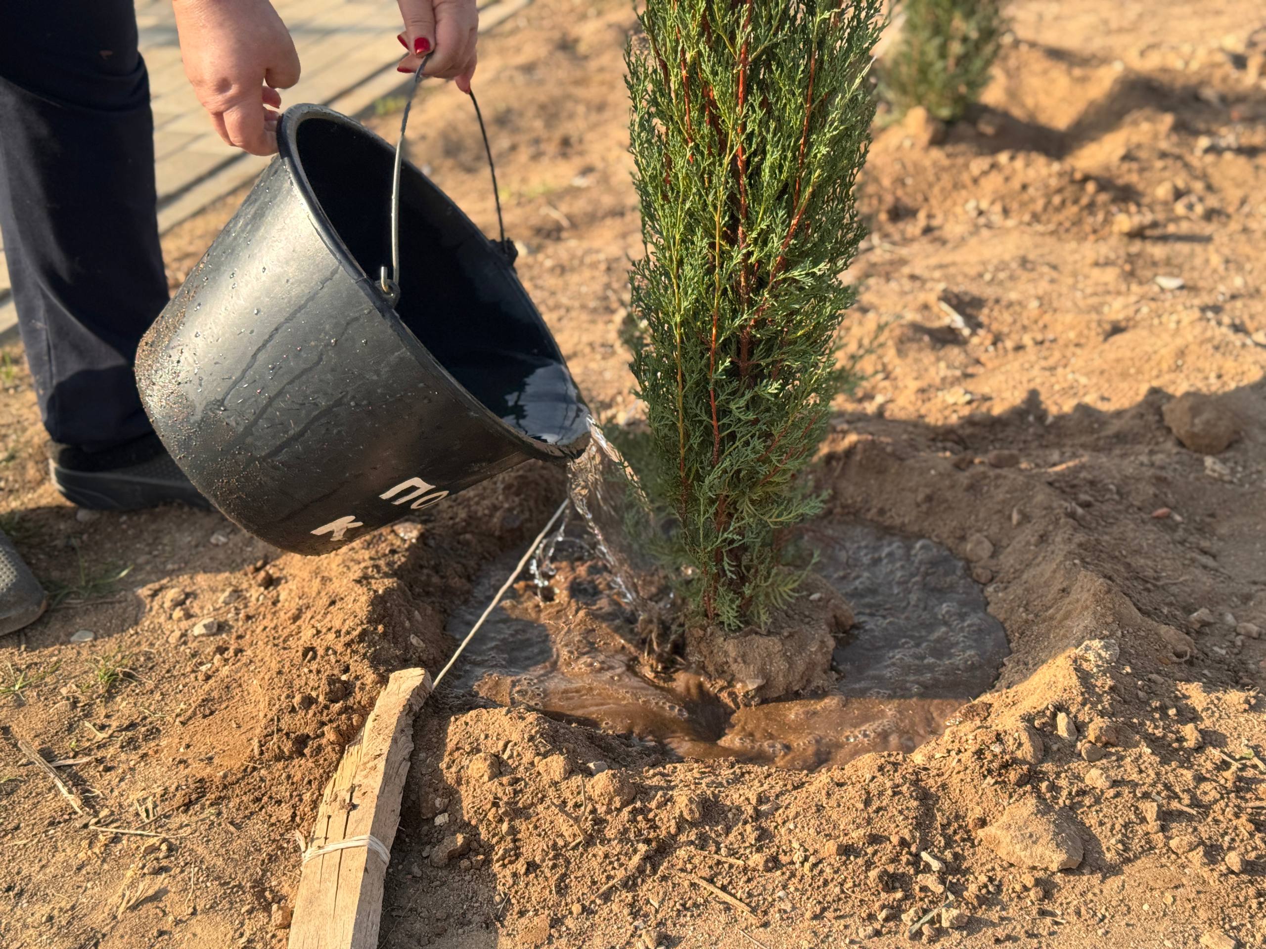 Сегодня в селе Луганское была высажено ещё 150 хвойных деревьев и цветов.