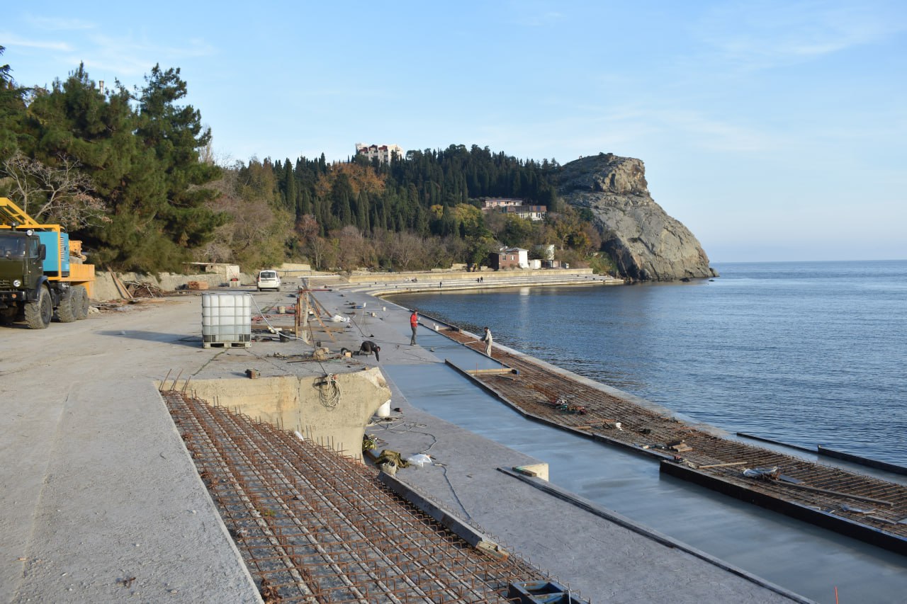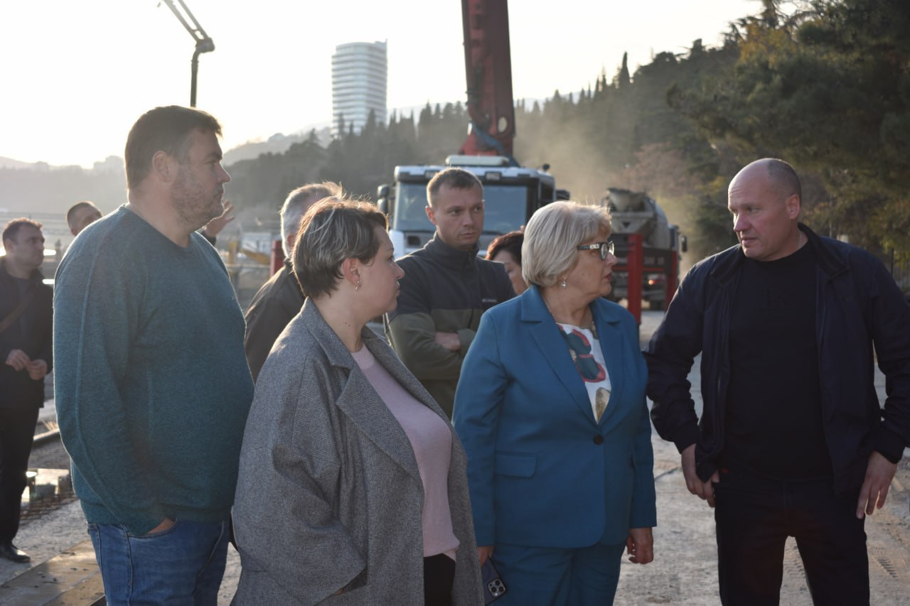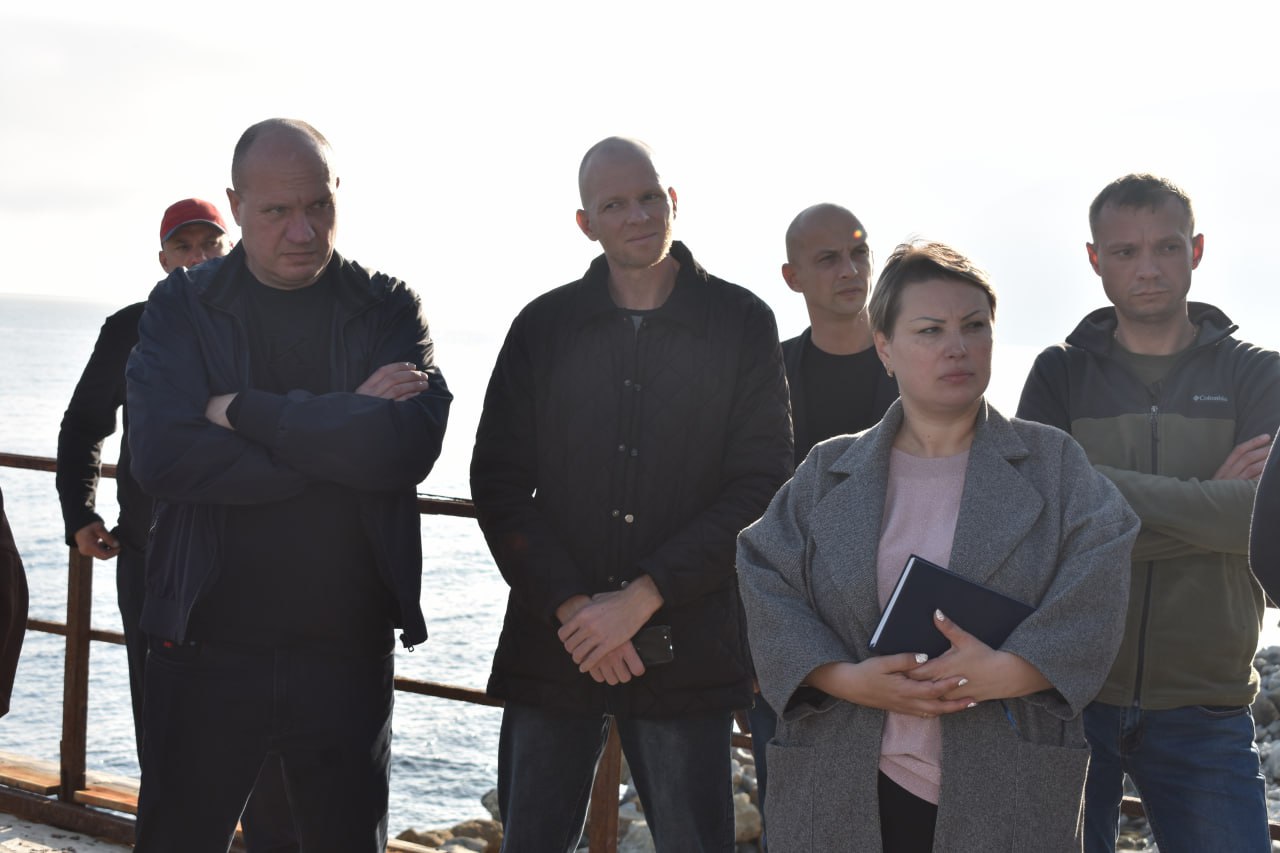 Провела выездное рабочее совещание на набережной, где ведутся работы по капитальному ремонту берегоукрепительных сооружений в районе санаториев "Карасан" и "Утес".