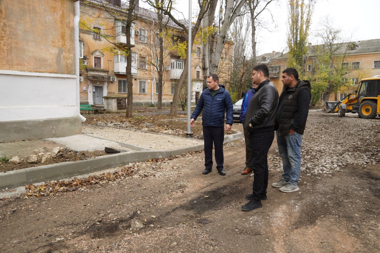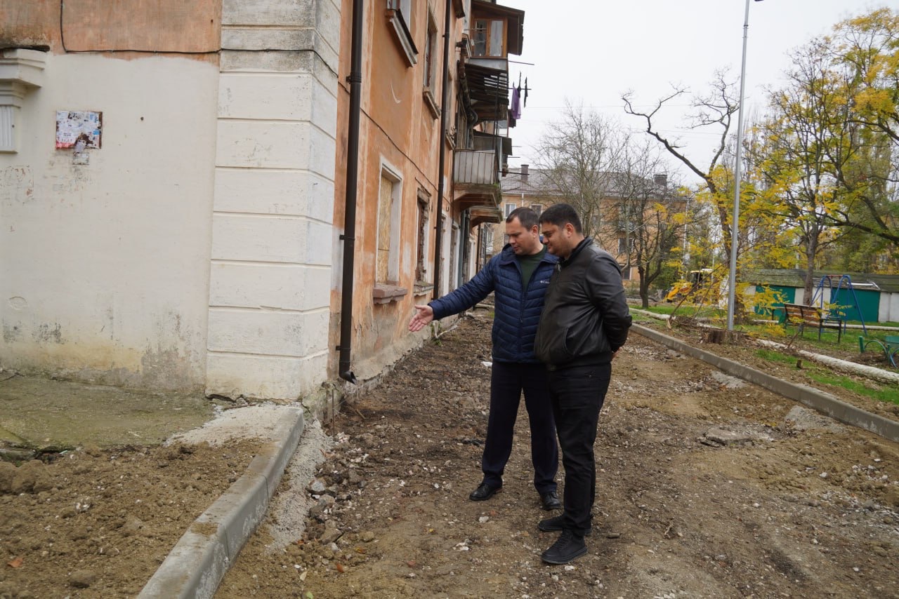 Глава администрации Олег Каторгин побывал во дворе по ул. Петра Дейкало, 6/1, ул. Архитектурной, 5/2, Бульваре Пионеров, 2/5, где продолжается благоустройство. На объекте работают строители, пообщался с представителями подрядной организации.