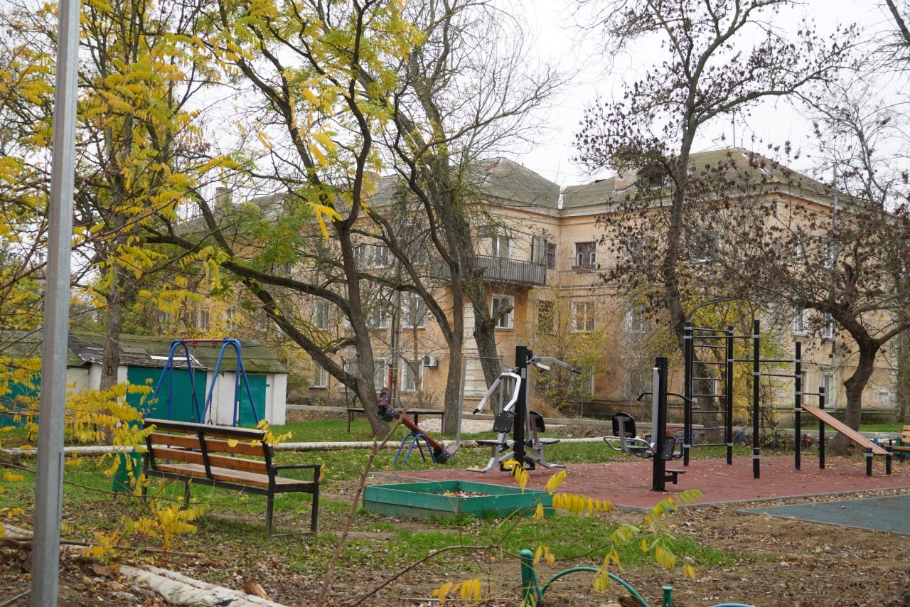 Во дворе уже установлено новое спортивное оборудование, которое пожелали сами жители. Смонтирована баскетбольная стойка, тренажеры, другие элементы для занятий физической культурой, уложено резиновое покрытие. Также по просьбе жильцов сохранены прежние игровые конструкции.
