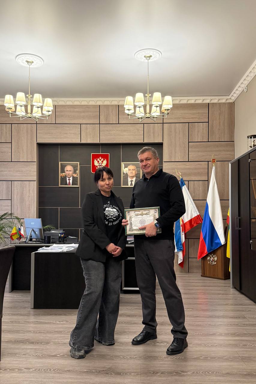 Сегодня волонтёр фонда «Добро Мира – Волонтеры Крыма» Юлия Коба передала благодарность от командования 42-й гвардейской мотострелковой дивизии. Для меня и коллег из администрации это большая честь.