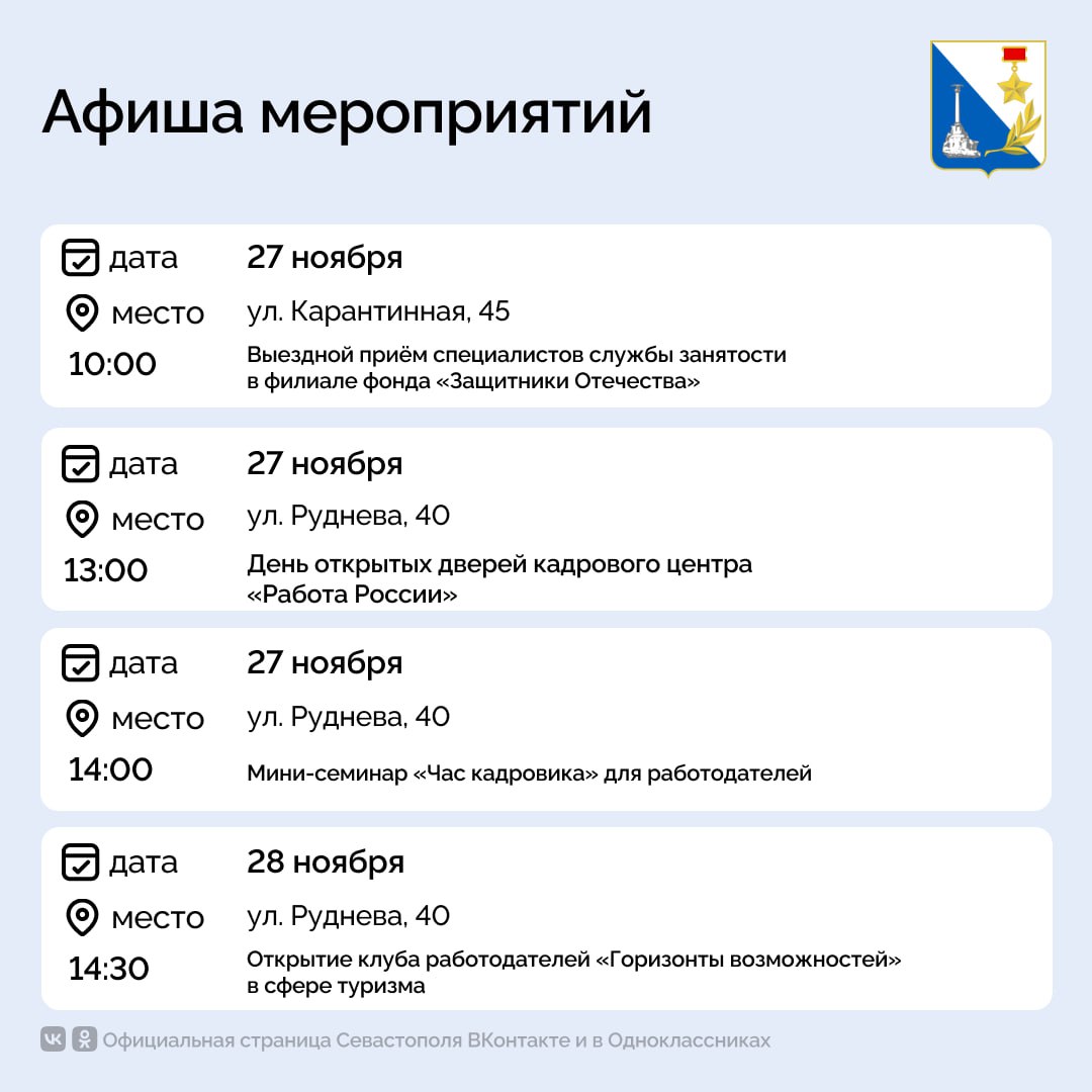 Кадровый центр «Работа России» приглашает севастопольцев на мероприятия
