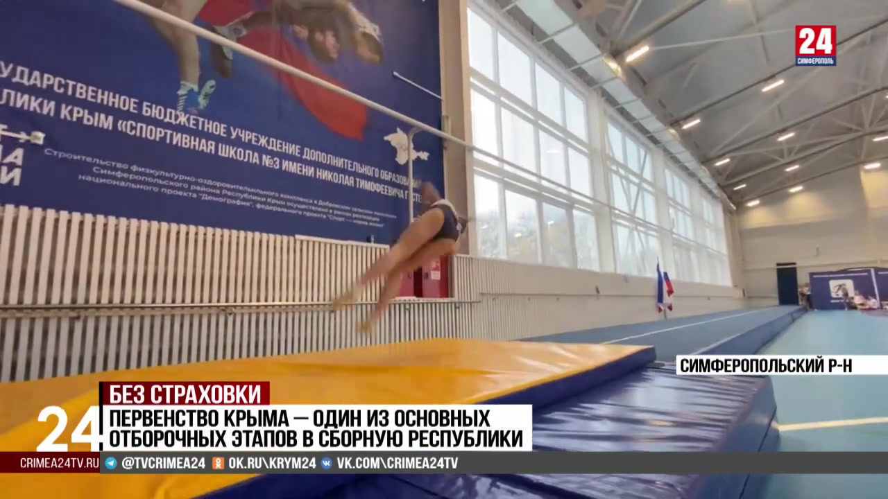 Отличная координация и чистая техника. В первенстве Крыма по прыжкам на акробатической дорожке приняли участие спортсмены с высокими разрядами. Они боролись за место в сборной, а судьи определили сильнейших. Что считают самой жёсткой ошибкой в этом виде спорта? Расскажет далее корреспондент телеканала «Симферополь 24» Анастасия Флёмина.