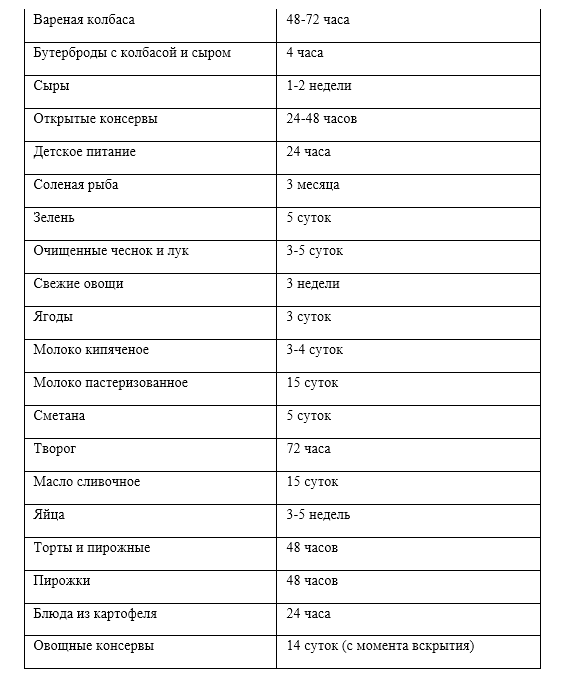 Для безопасного хранения продукты после приготовления необходимо поместить в холодильник с температурой от 4 до 6 градусов. При этом процессы жизнедеятельности микроорганизмов резко замедляются. Эта мера способна в значительной степени обезопасить от угрозы пищевого отравления. Однако сроки хранения продуктов в холоде не бесконечны, поскольку среди патогенных для человека микробов есть и те, которые размножаются и в холодильнике.