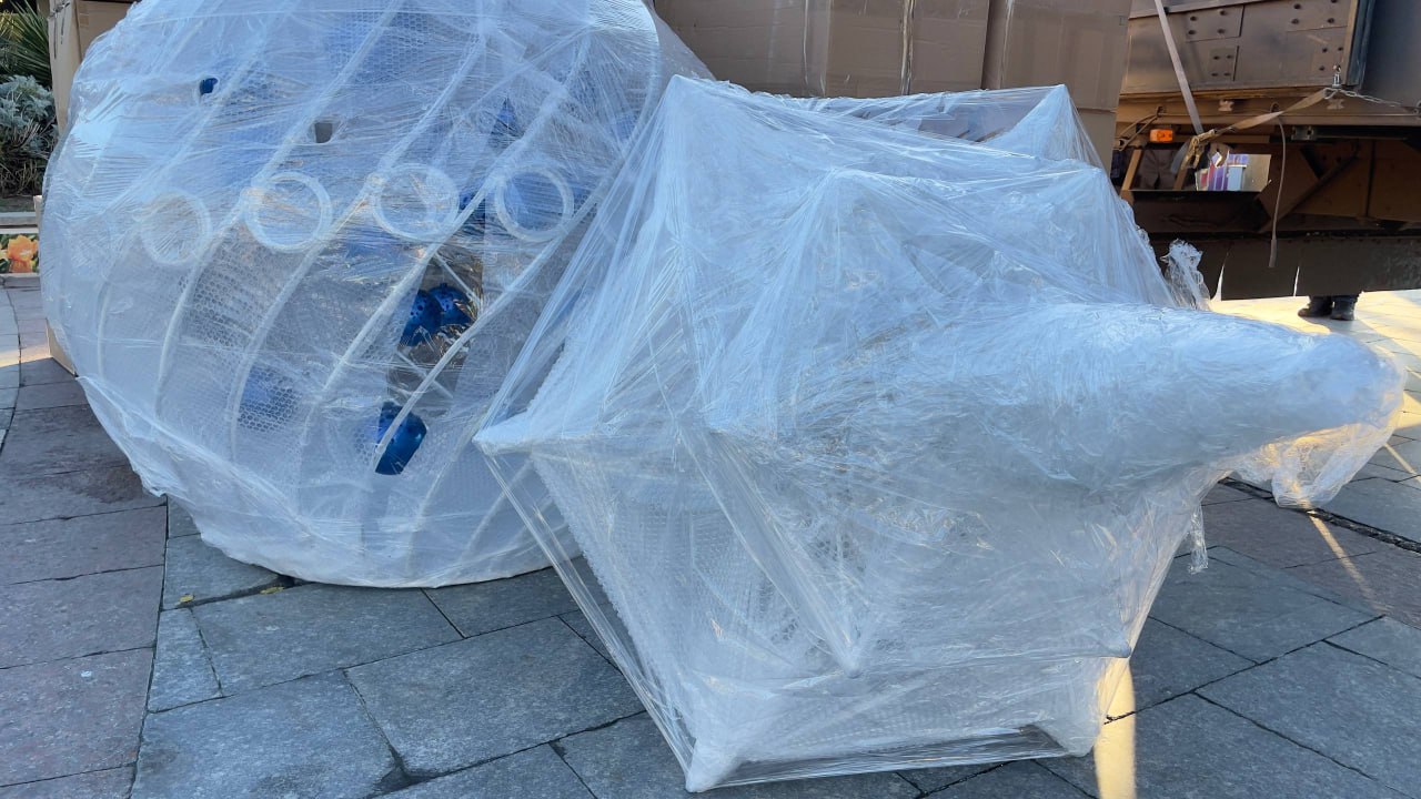 Сегодня на набережную прибыла первая партия новогодних украшений, включая главную ёлку региона – 16 метровую светодинамическую красавицу. Внешне она максимально напоминает натуральную ель. В основе сборно-разборная металлическая конструкция, состоящая из стального каркаса, ветви – из искусственной хвои. Главная особенность – ель устойчива к неблагоприятным погодным условиям, в том числе сильному ветру. Цветовая гамма шаров – красная и золотая. Старая ёлочка героически отстояла несколько сезонов, пережила прошлогоднюю бурю и, к сожалению, уже не подлежит монтажу.