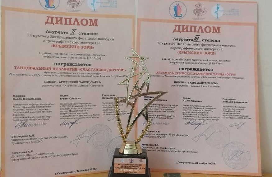 Армянский танец «Тараз» участниц старшей группы танцевального коллектива «Счастливое детство» награжден дипломом лауреата 2 степени в номинации «Народная стилизация». Крымскотатарский танец «Баарь хайтармасы» от старшей группы ансамбля крымскотатарского танца «Отуз» удостоен диплома лауреата 3 степени.