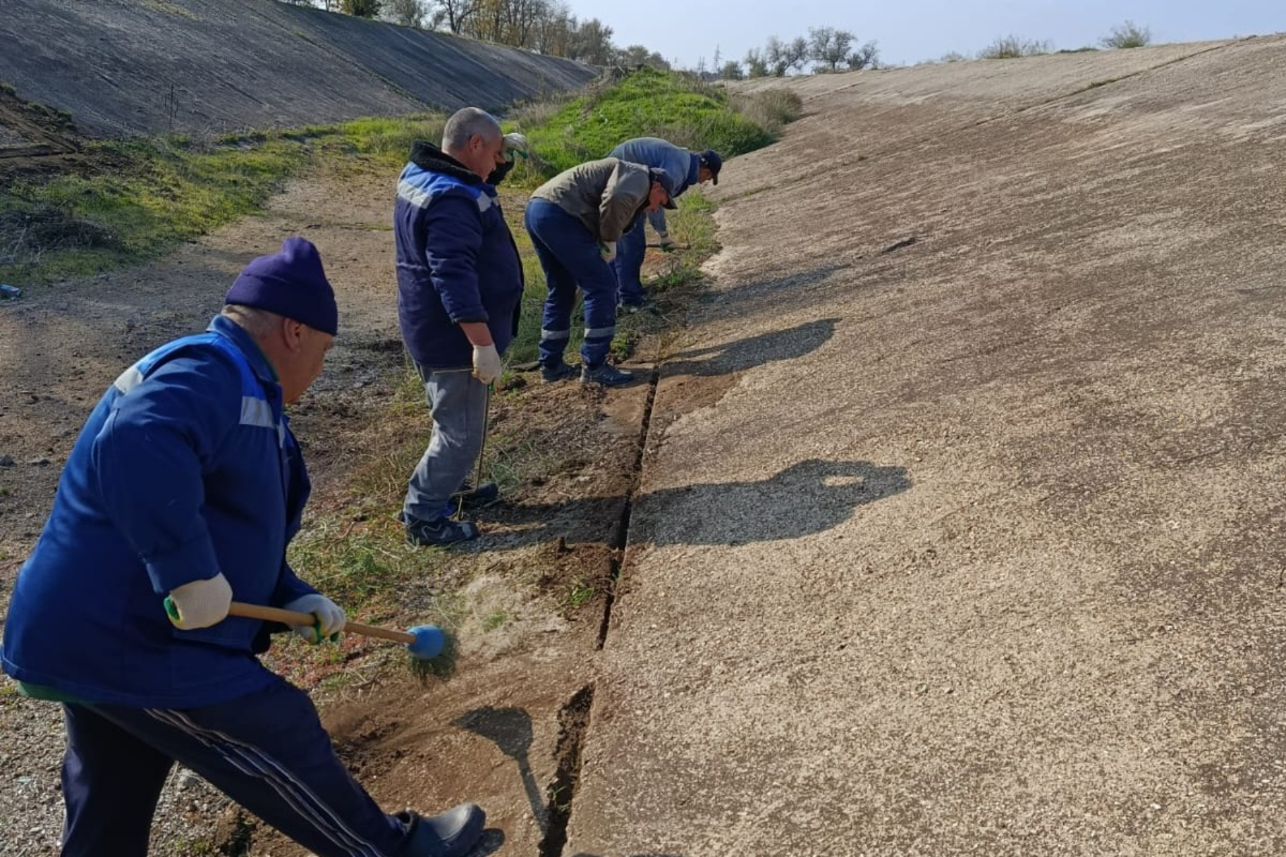 В Сакском филиале ГБУ РК «Крыммеливодхоз» согласно плану ремонтно-уходных работ на 2025 год на Крымском участке оросительных систем продолжаются работы в рамках ремонтно-уходных работ. Проводится ремонт температурно-усадочных швов, а также бетонной облицовки Сакского канала ПК472+00 — ПК473+50. Выполнены работы общей протяжённостью более 150 метров. Объём уложенного бетона составил 3,0 кубометра.
