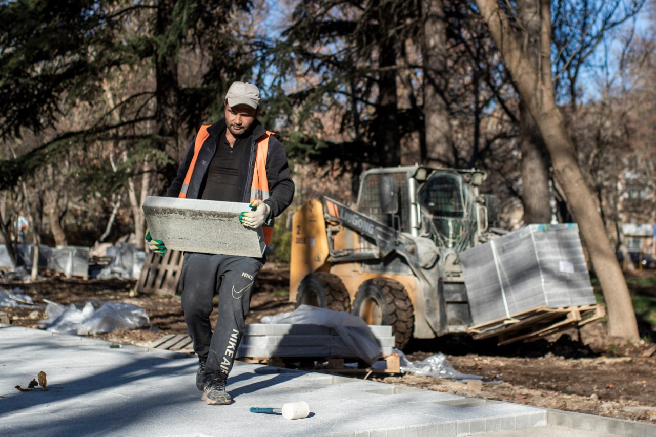 Подрядная организация проводит монтаж новых инженерных сетей и ливневой канализации. Завершена укладка более 15 000 м современного плиточного покрытия, продолжается установка системы автополива и монтаж малых архитектурных форм.