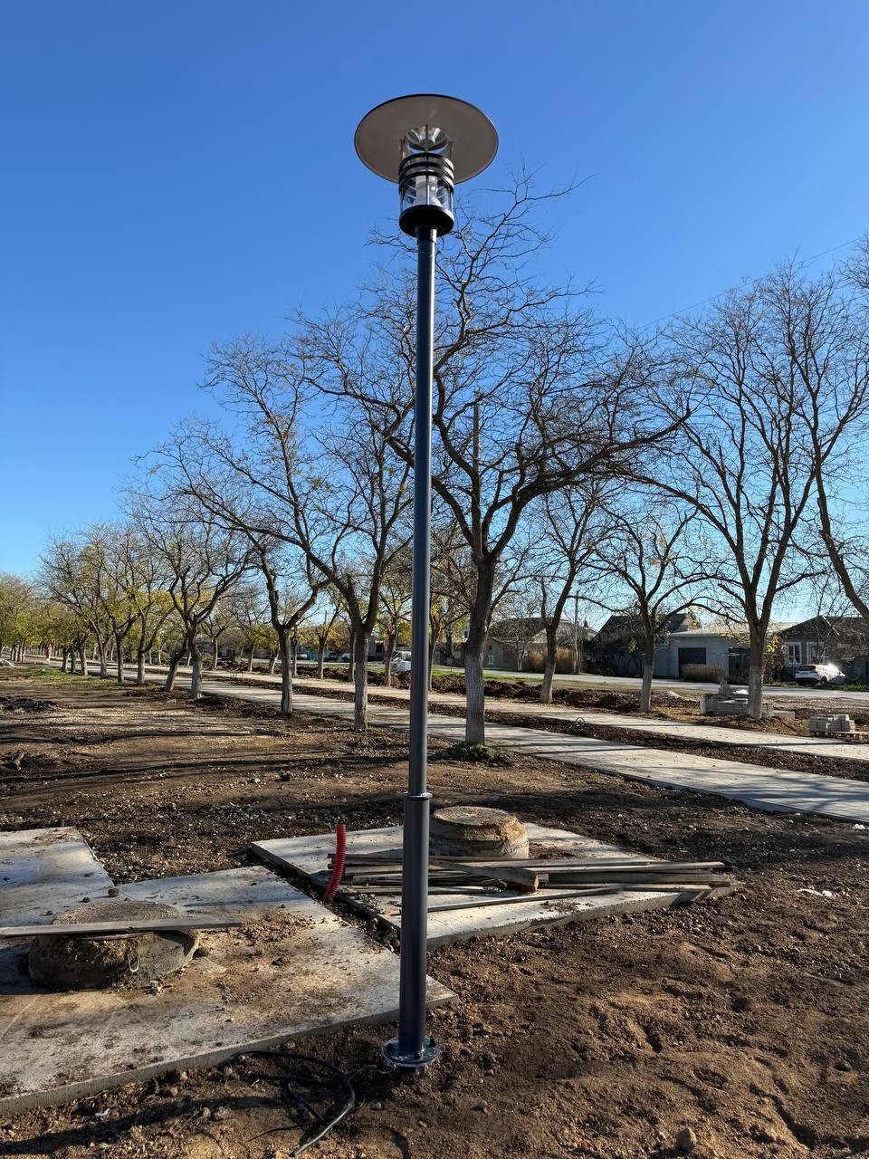 На участке от ул. Эскадронной до ул. Немичевых уложена тротуарная плитка, устанавливают опоры наружного освещения, выполняют монтаж системы автополива.