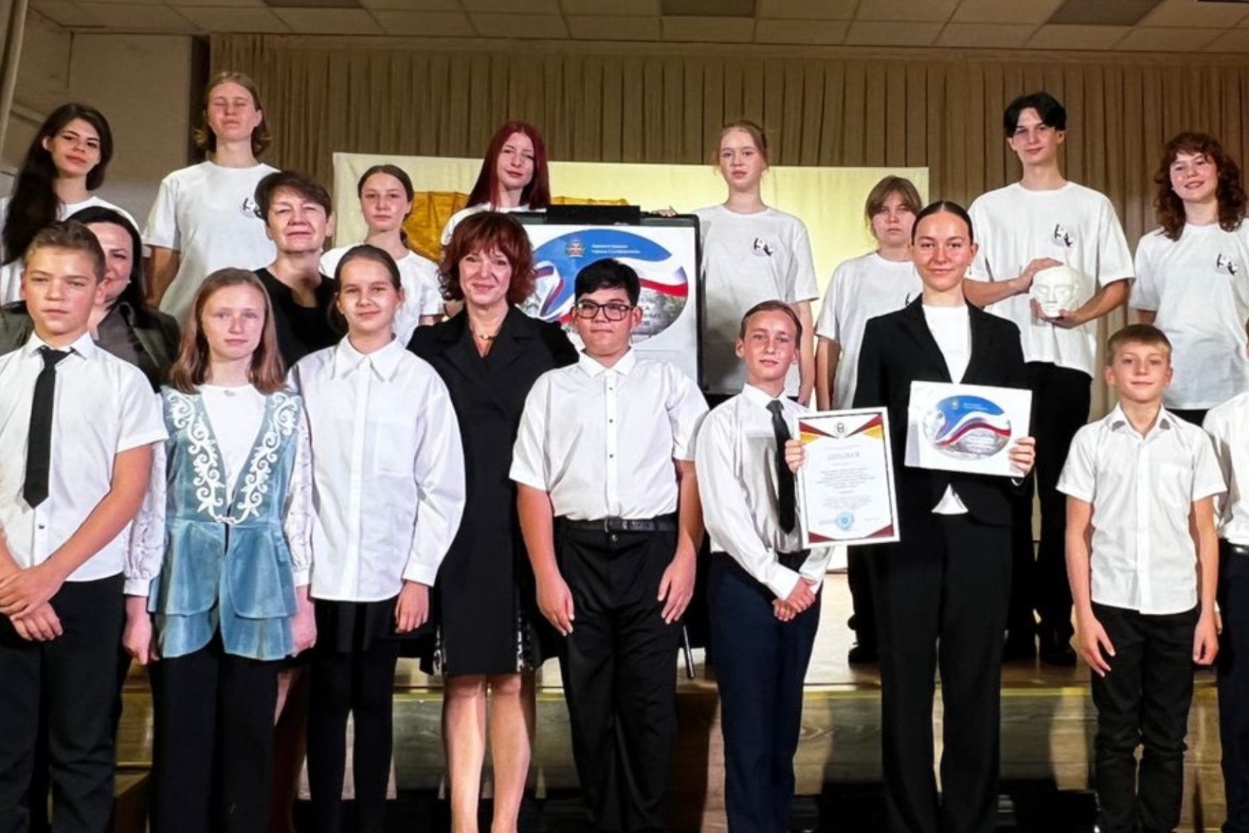 Заместитель главы администрации города Симферополя Дмитриева Оксана Васильевна вручила учащимся школы-инициаторам проекта «На сцене ты всегда герой» - оборудование для школьной театральной студии» Диплом Администрации города Симферополя Республики Крым, а также логотип победителя конкурса инициативных проектов 2025 года.