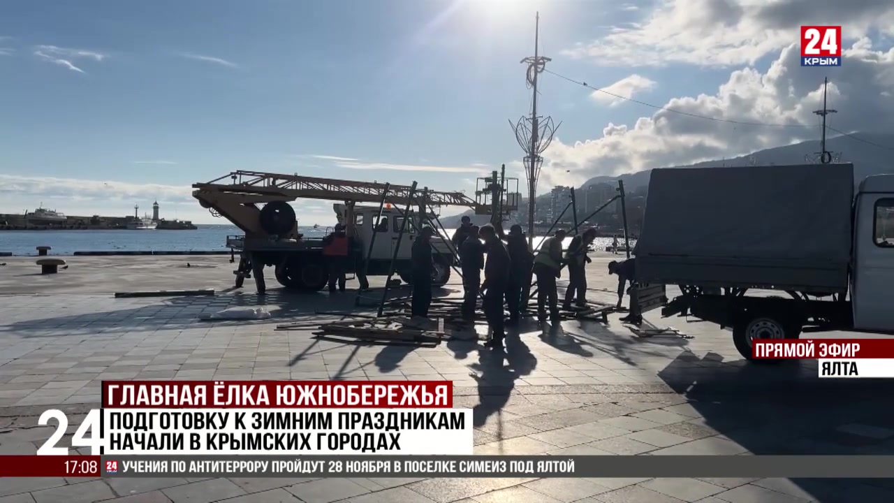 Подготовку к зимним праздникам начали в крымских городах. На набережную Ялты доставили первую партию украшений и 16-метровую светодинамическую ёлку. Как сообщила глава администрации Янина Павленко, искусственное дерево устойчиво к неблагоприятным погодным условиям, включая сильный ветер. Цветовая гамма новогодних шаров – красная и золотая. Установят и коридор со звёздным небом, дом Деда Мороза, ёлки у квадратного фонтана, на площади Советской и у входа на Приморский пляж. Украшать общественные пространства начали и в других городах Республики. Напомню, новогодние огни в Крыму торжественно зажгут 19 декабря, в День Святого Николая.