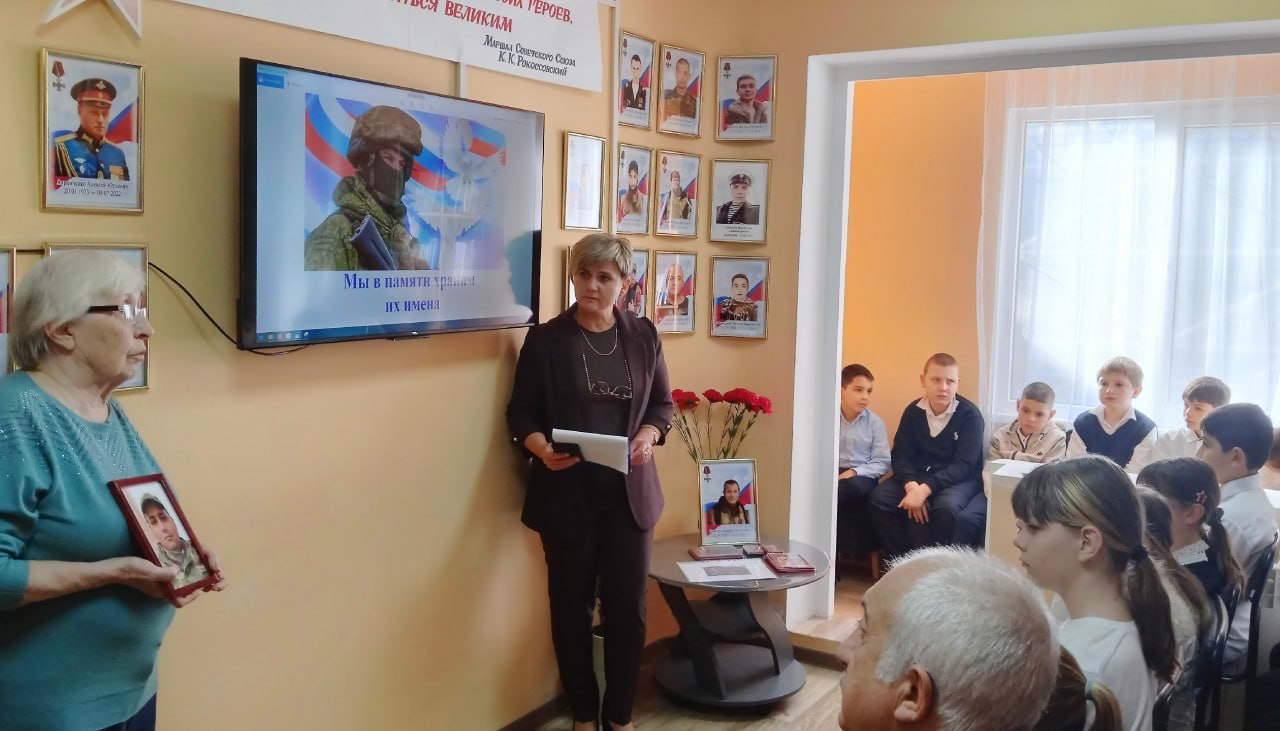 На мероприятии присутствовали учащиеся 4 класса МБОУ «СОШ № 29 им. Г. К. Жукова» и родственники героев специальной военной операции. Они принесли фотографии и рассказали о героических подвигах своих близких.