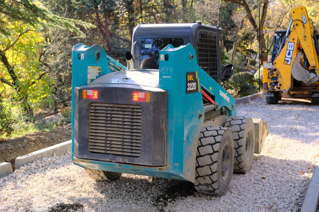 Сейчас работы сосредоточены в верхней и средней зонах – до конца недели там планируют завершить укладку асфальтобетонного покрытия, там же (по геологическим соображениям) идёт переустройство ливневой канализации. Тяжёлая техника в основном используется для устройства «подушки» из щебня и подвоза грузов, а траншеи под кабели системы видеонаблюдения выполняются исключительно вручную.
